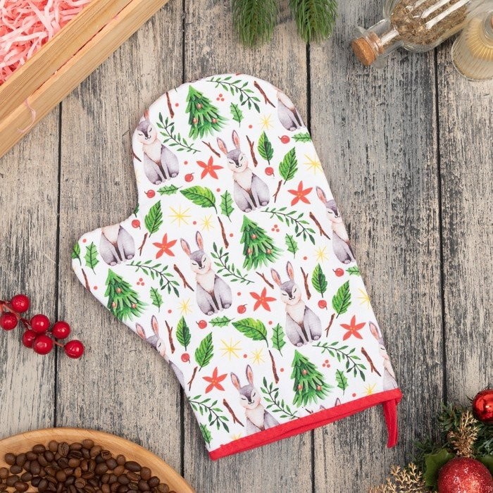 Варежка-прихватка «Happy New Year» 20×28 см, саржа, 100% х/л, ватин 250 г/м2