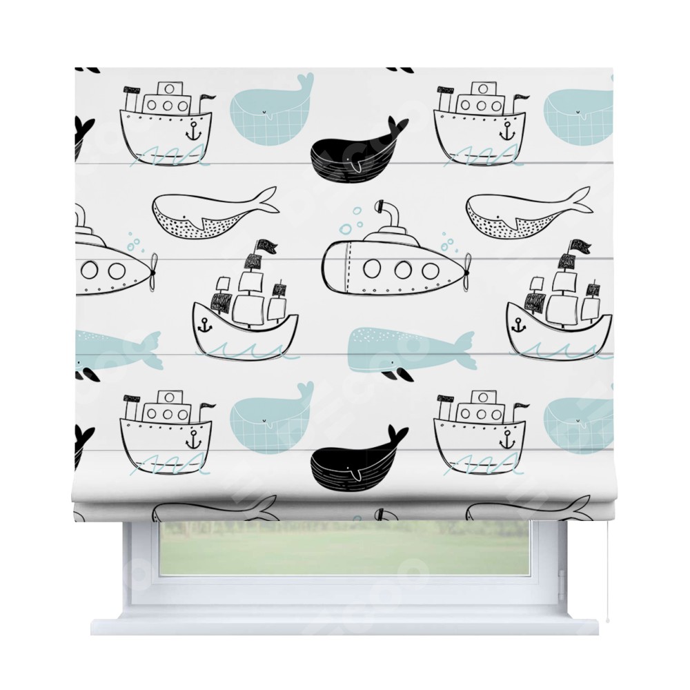 Римская штора производителя «Cortin», используется для проёма, пошита из ткани блэкаут с нанесением сублимационной печати «Морская прогулка». Имеет универсальный механизм и подходит для монтажа: на потолок, на стену и в нишу.
