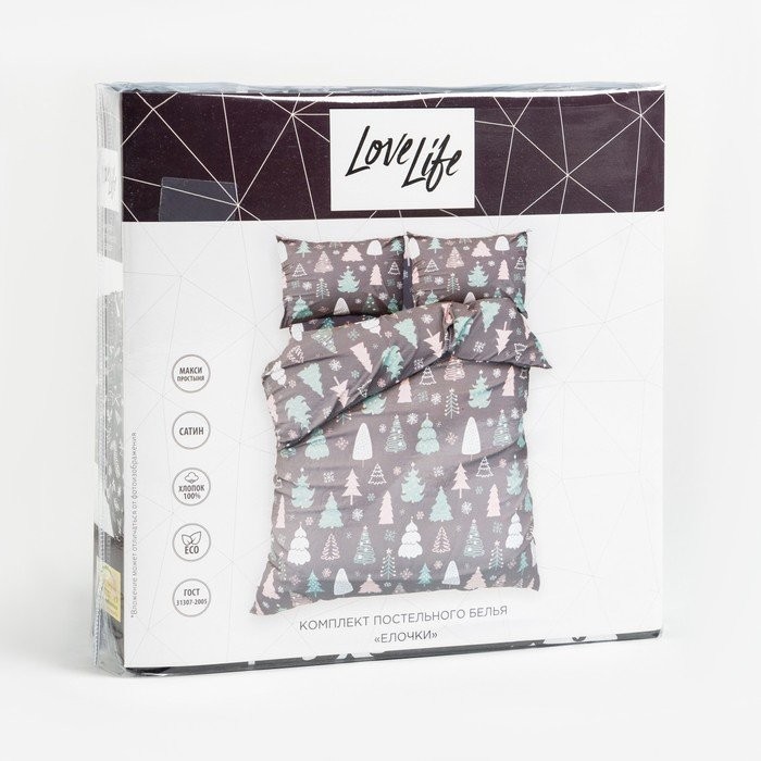 Постельное бельё LoveLife Евро «Елочки» 200×217 см, 225×240 см, 50×70 см-2шт, 100%хлопок, сатин