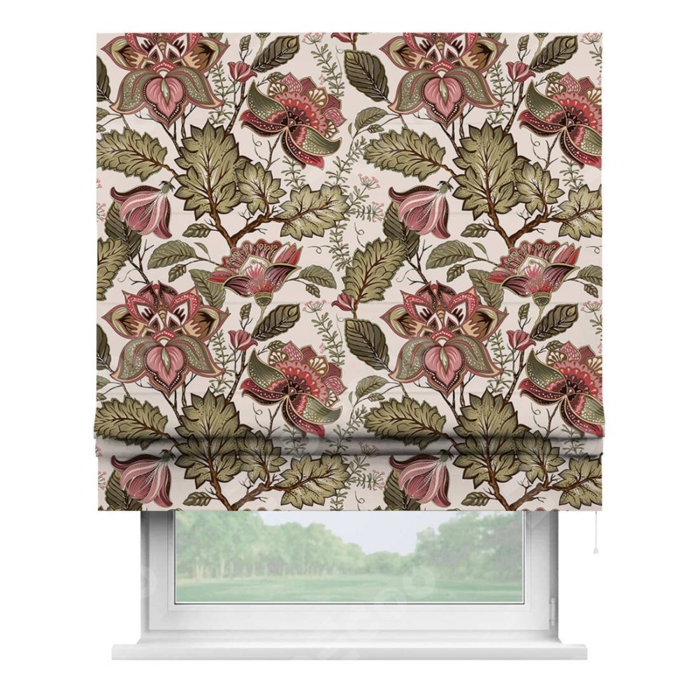 Римская штора производителя «Cortin», используется для проёма, пошита из ткани блэкаут с нанесением сублимационной печати «Старинные цветы». Имеет универсальный механизм и подходит для монтажа: на потолок, на стену и в нишу.