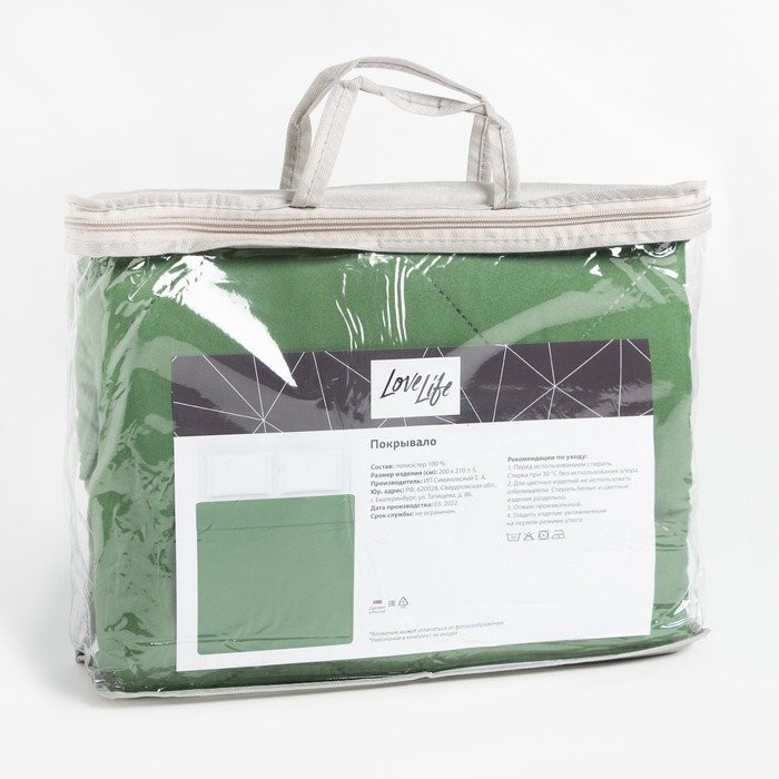 Покрывало LoveLife Евро 200×210±5 см, цвет зелёный, микрофайбер, 100% п/э