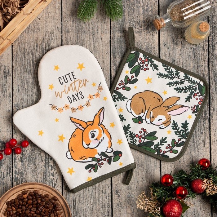 Набор кух. «Сute winter days» варежка-прихватка 20×28 см, прихватка 19×19 см, 100% хл
