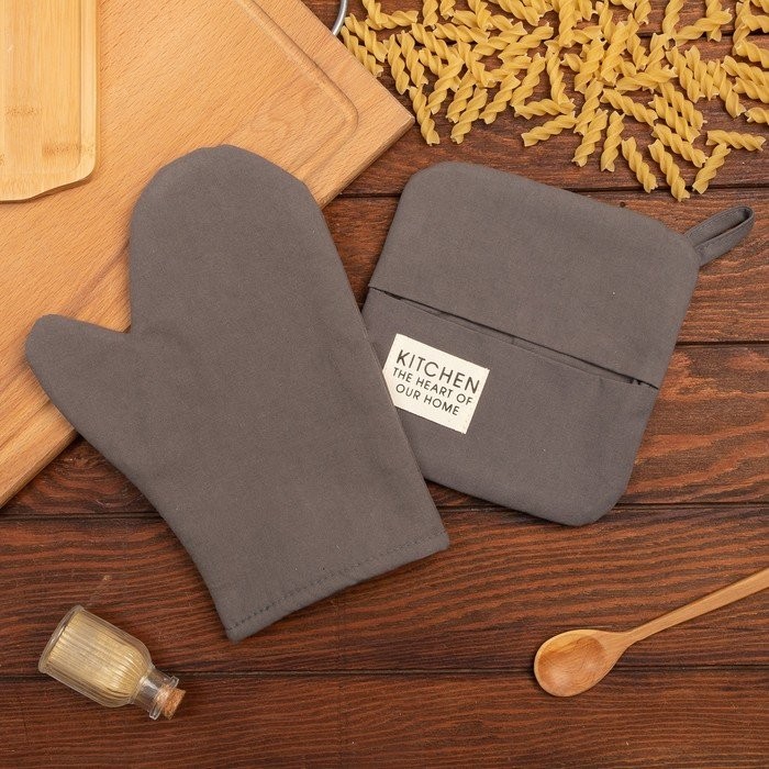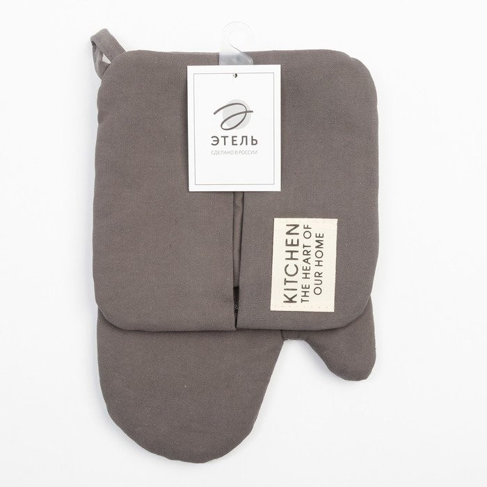 Набор кух. Этель Kitchen, цв. серый, варежка-прихватка 18×29 см, прихватка 19×19 см
