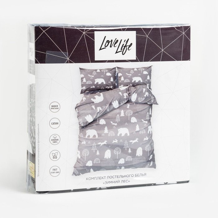 Постельное белье 1,5 спальное «Зимний лес» 143×215, 150×225, 50×70−2шт, сатин