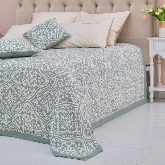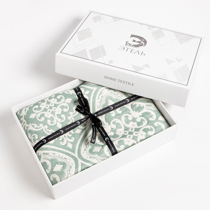 Покрывало хлопковое Этель «Орнамент» 150×240 см, цвет зелёный, 100% хлопок, 300гр/м2