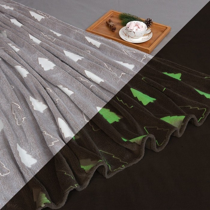 Плед светящийся в темноте Этель «Елочки» 200*220 см,100% п/э, корал-флис 220 гр/м2