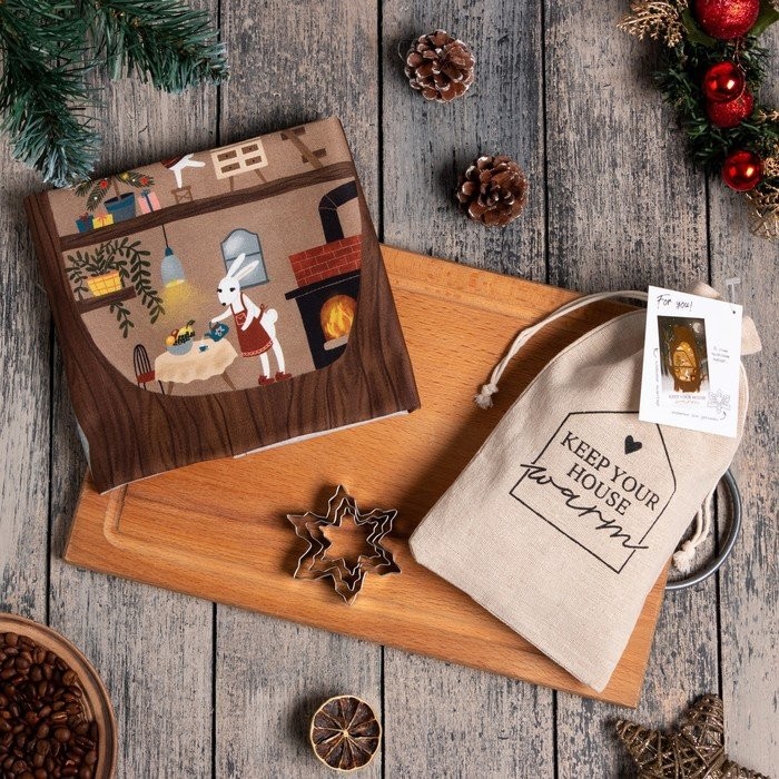 Набор в мешочке Этель Hollow: полотенце 40×73 см, формочки для запекания — 3 шт.