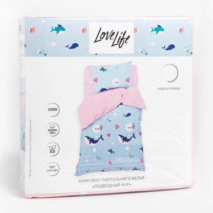 Постельное бельё 1.5сп LoveLife «Подводный мир» 143×215 см, 150×214 см, 70×70 см-1 шт, 125г/м2 сатин