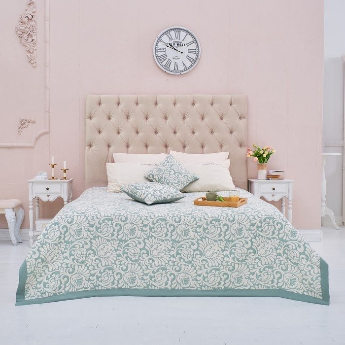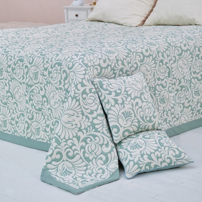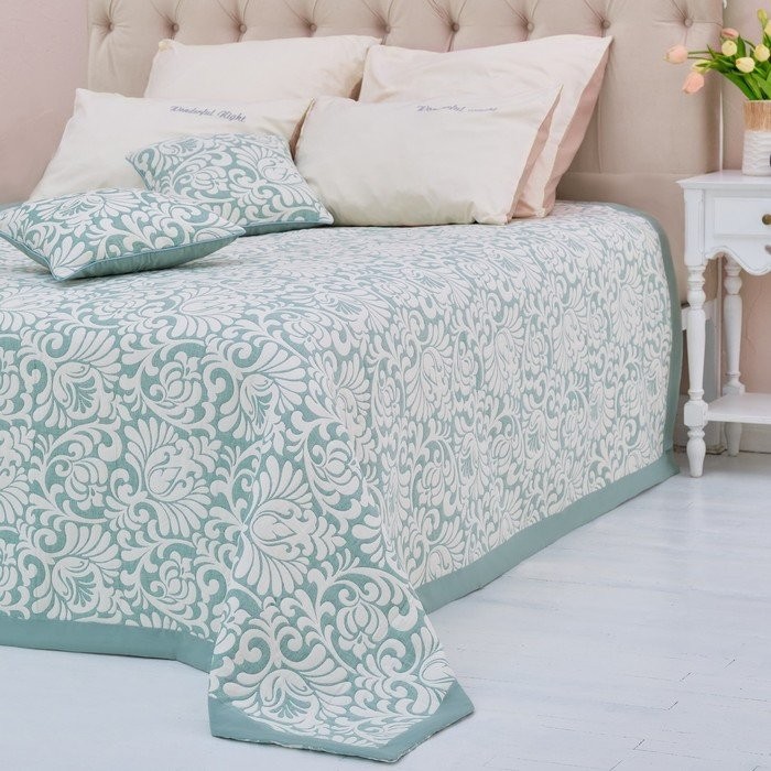 Покрывало хлопковое Этель «Узоры» 150×240 см, цвет зелёный, 100% хлопок, 300гр/м2