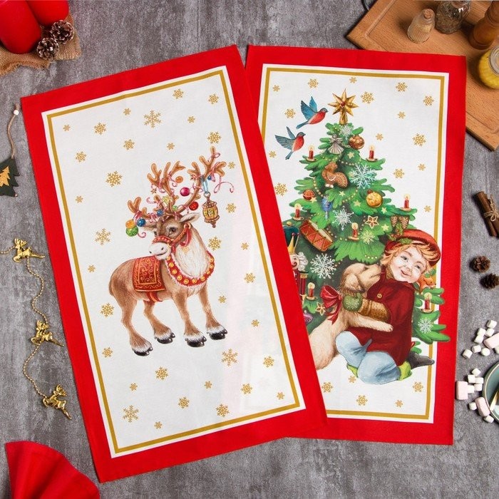 Набор полотенец Этель «Новогодняя сказка» 40×67 см — 2 шт, 100% хл, саржа 190 гр/м2