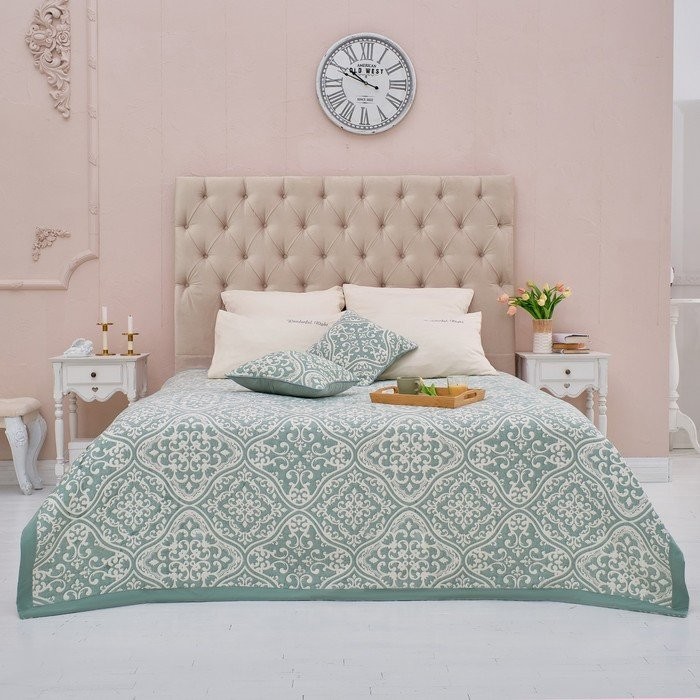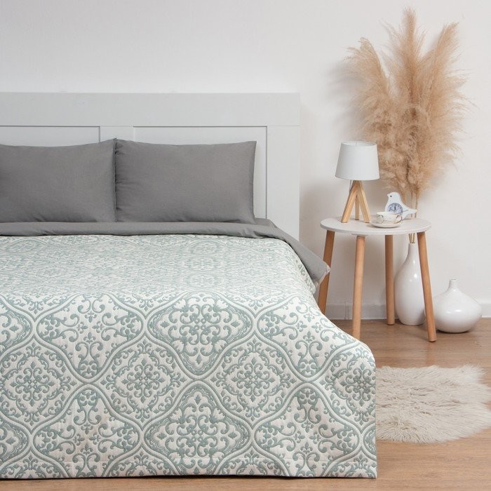 Покрывало хлопковое Этель «Орнамент» 220×240 см, цвет зелёный, 100% хлопок, 300гр/м2