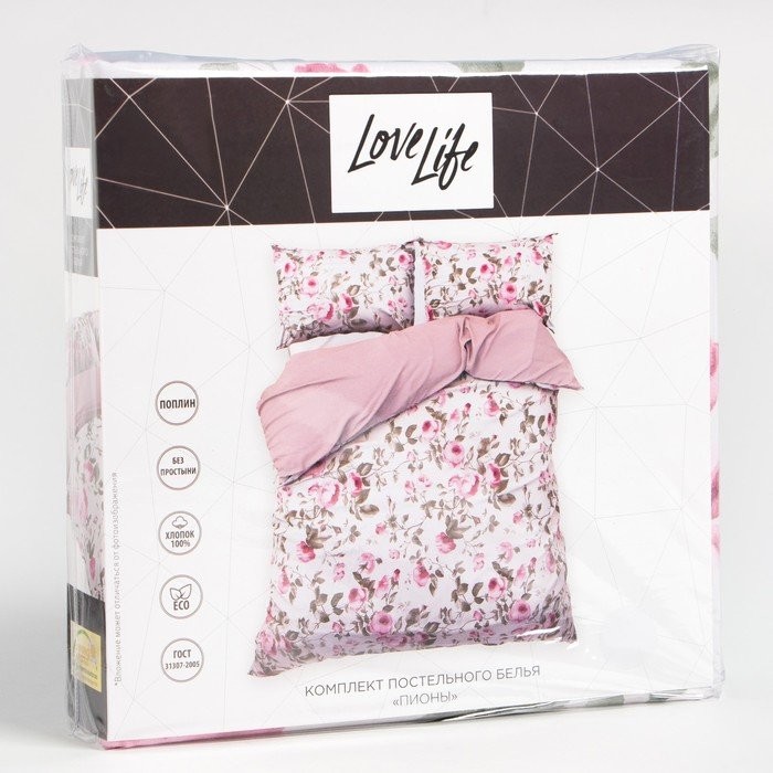 КПБ евро LoveLife «Пионы»: пододеяльник 200*217см+наволочка 70*70см-2шт, поплин, 125 г/м²