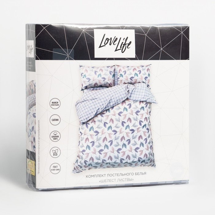 Постельное бельё LoveLife Евро «Шелест листвы» 200×217 см, 225×240 см, 50х70см-2шт,100%хлопок,сатин,125г/м²