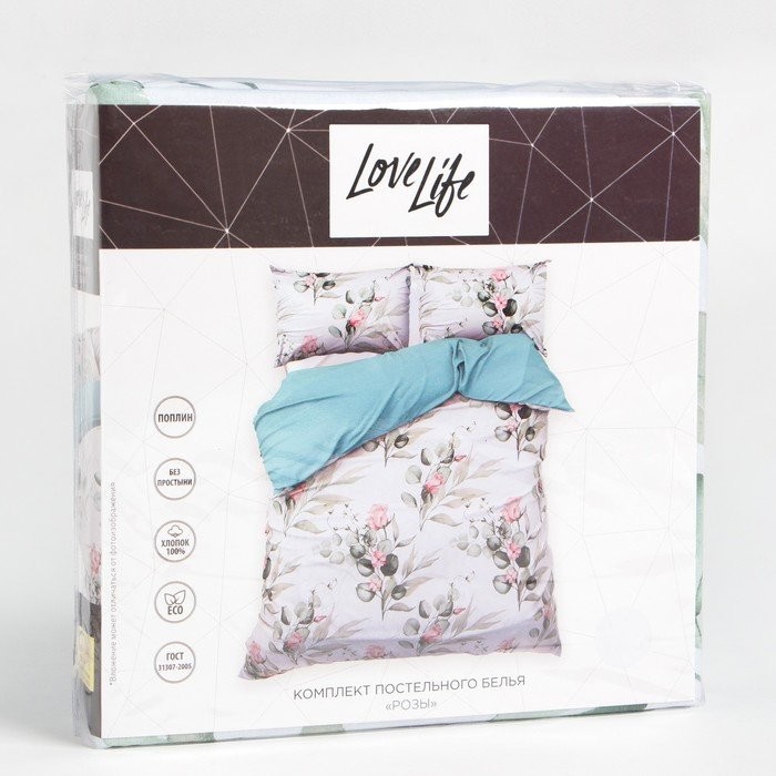 КПБ 1,5 сп LoveLife «Розы»: пододеяльник 150*217см+наволочка 50*70см-1шт, поплин, 125г/м²