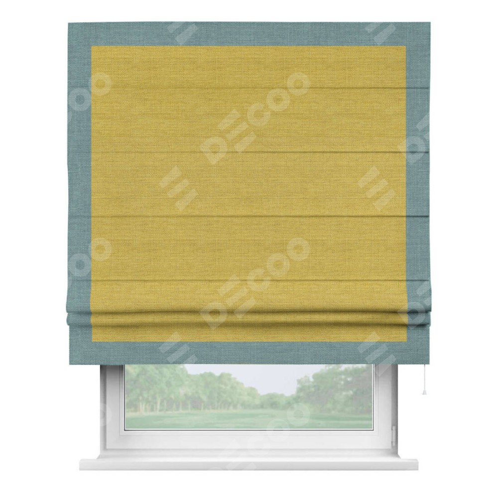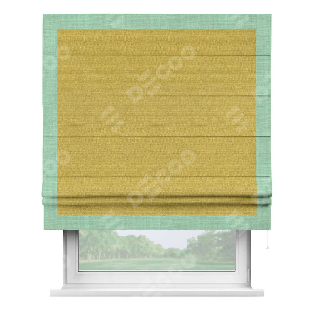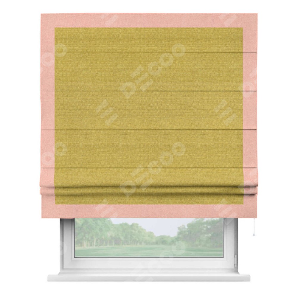 Римская штора «Кортин» с кантом Чесс, для проема, ткань лён светло-салатовый