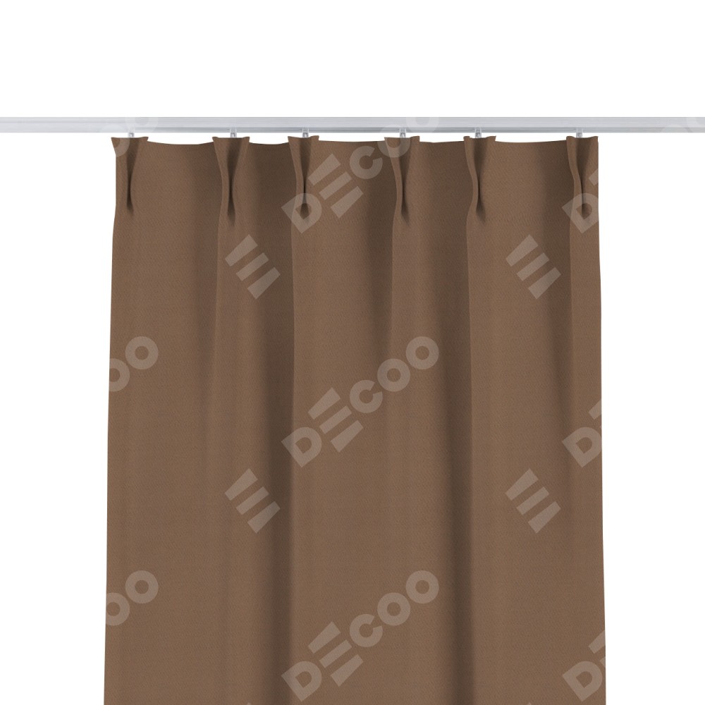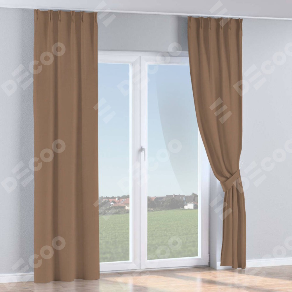 Комплект прямых штор, от производителя «Cortin», пошиты из ткани блэкаут однотонный коричневый, артикул ткани 88285. С изнаночной стороны в верхней части штор пристрачивается шторная лента с декоративными складками «Кустик». Для создания элегантных складок прямые шторы шьются по стандарту с коэффициентом 1:2 (на 100 см. ширины проёма 200 см. ширины ткани).