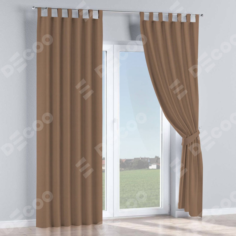 Комплект прямых штор, от производителя «Cortin», пошиты из ткани блэкаут однотонный коричневый, артикул ткани 88285. Данная модель пошита на петлях, комплектуется на выбор круглым карнизом и подходит для монтажа на стену или потолок. Прямые шторы на петлях шьются по стандарту с коэффициентом 1/2 (на 100 см. ширины проёма 200 см. ширины ткани), отличительным преимуществом данной модели является простой способ монтажа. Достаточно повесить ее на трубу и штора готова!