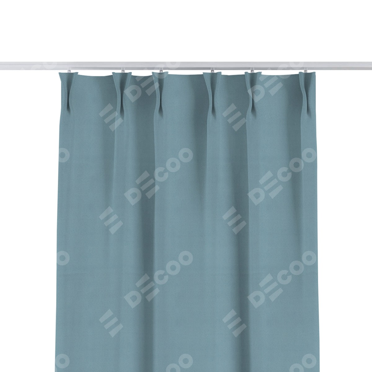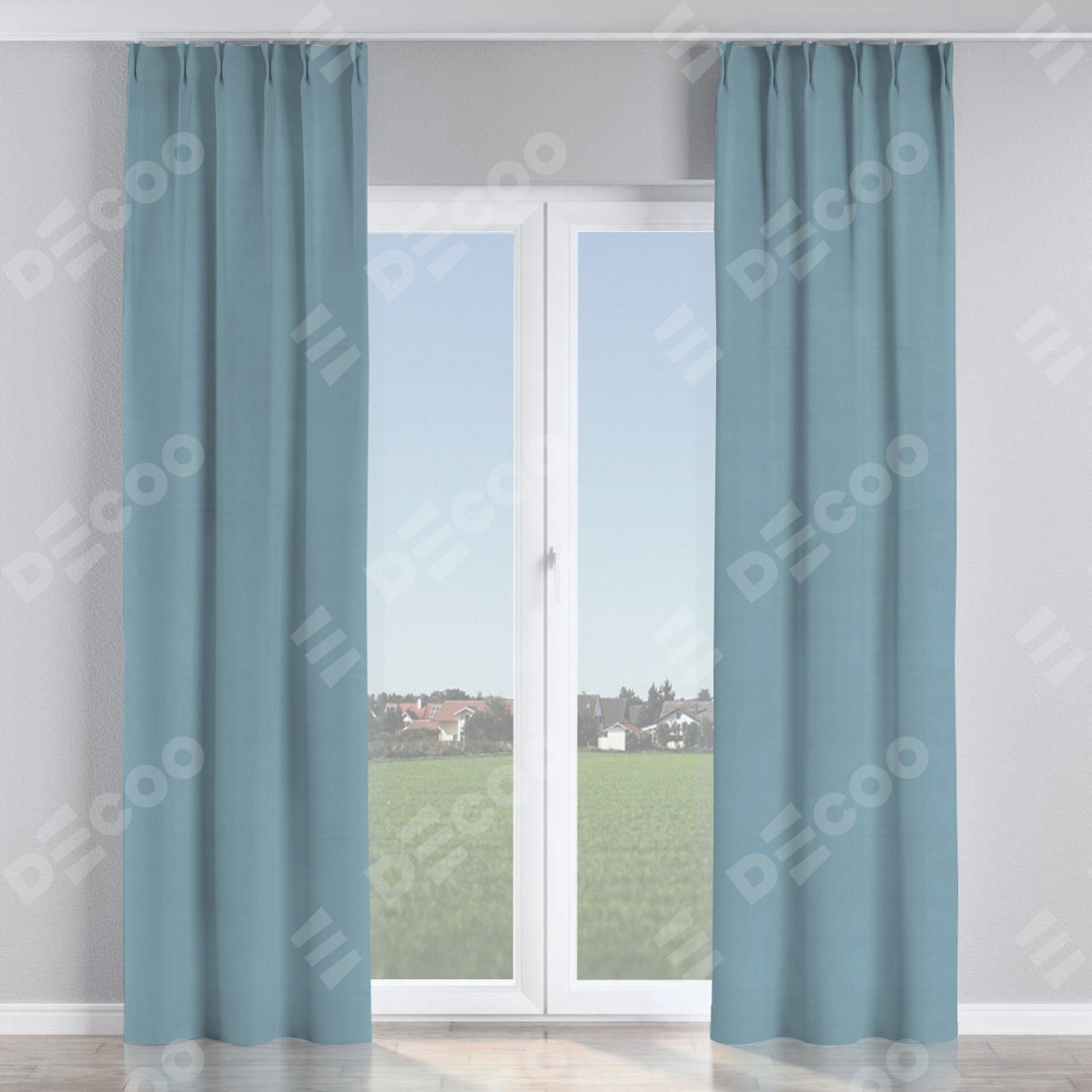 Комплект прямых штор, от производителя «Cortin», пошиты из ткани блэкаут однотонный серо-голубой, артикул ткани 29327. С изнаночной стороны в верхней части штор пристрачивается шторная лента с декоративными складками «Кустик». Для создания элегантных складок прямые шторы шьются по стандарту с коэффициентом 1:2 (на 100 см. ширины проёма 200 см. ширины ткани).
