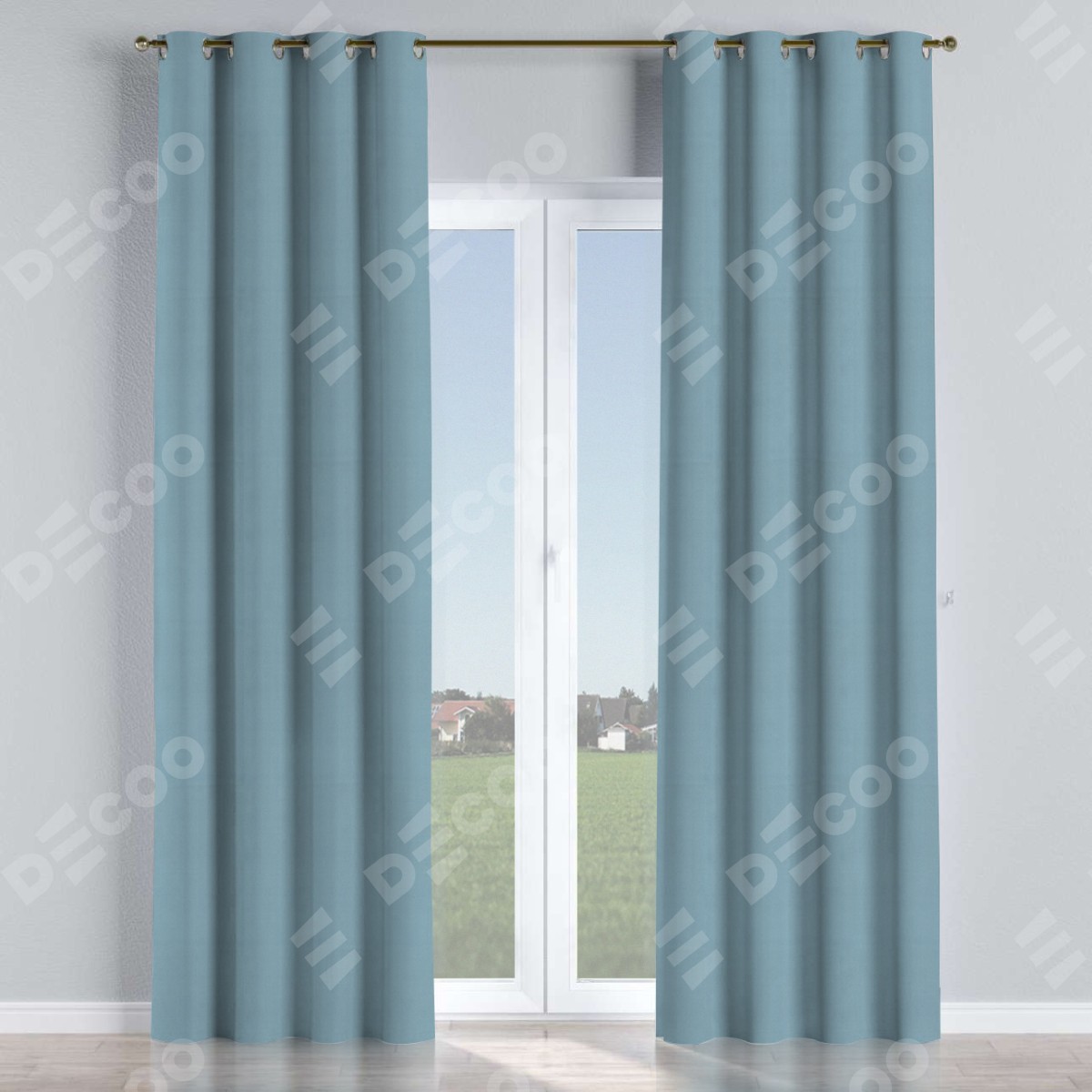 Комплект прямых штор, от производителя «Cortin», пошиты из ткани блэкаут однотонный серо-голубой, артикул ткани 29327. Данная модель пошита на люверсах, комплектуется на выбор круглым карнизом и подходит для монтажа на стену или потолок. Прямые шторы на люверсах шьются по стандарту с коэффициентом 1/2 (на 100 см. ширины проёма 200 см. ширины ткани), отличительным преимуществом данной модели является простой способ монтажа. Достаточно повесить ее на трубу и штора готова!