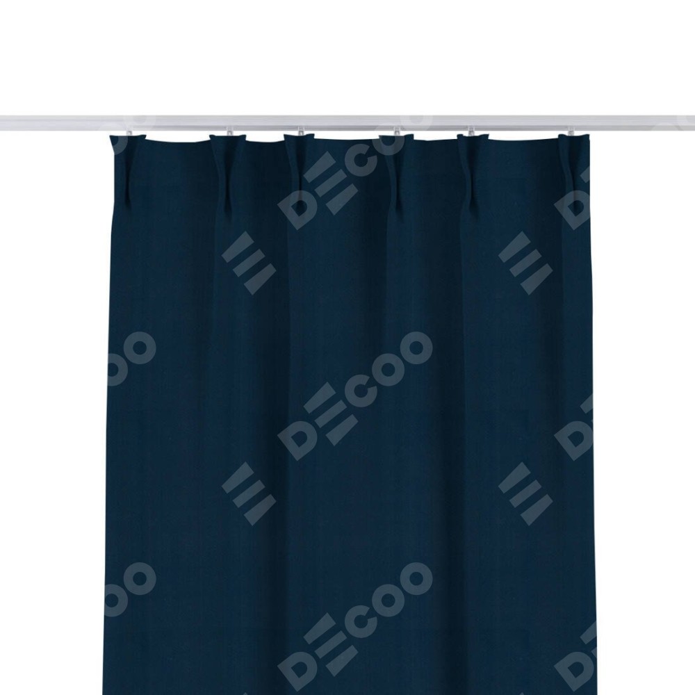 Комплект прямых штор, от производителя «Cortin», пошиты из ткани блэкаут однотонный синий, артикул ткани 29327. С изнаночной стороны в верхней части штор пристрачивается шторная лента с декоративными складками «Кустик». Для создания элегантных складок прямые шторы шьются по стандарту с коэффициентом 1:2 (на 100 см. ширины проёма 200 см. ширины ткани).