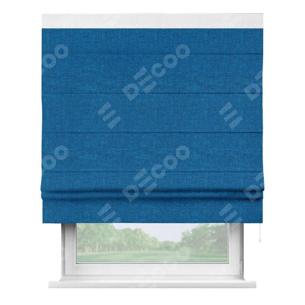 Римская штора «Кортин» с кантом Кинг, для проема, ткань лён синий