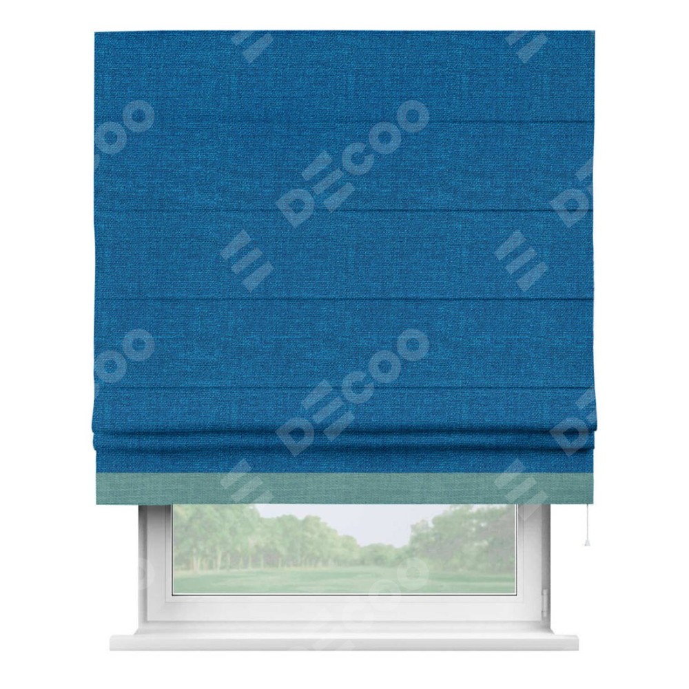 Римская штора «Кортин» с кантом Джестер, для проема, ткань лён синий