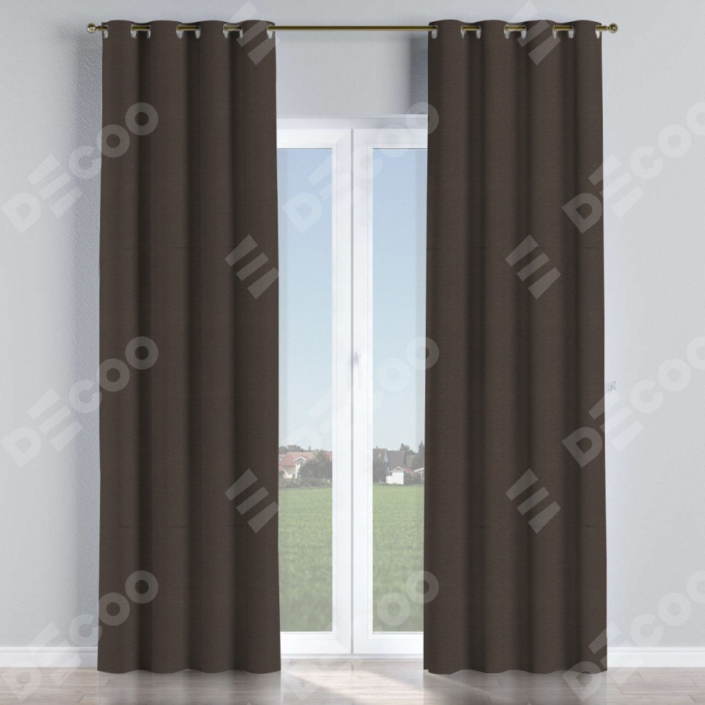 Комплект прямых штор, от производителя «Cortin», пошиты из ткани лён димаут венге, артикул ткани 85410. Данная модель пошита на люверсах, комплектуется на выбор круглым карнизом и подходит для монтажа на стену или потолок. Прямые шторы на люверсах шьются по стандарту с коэффициентом 1/2 (на 100 см. ширины проёма 200 см. ширины ткани), отличительным преимуществом данной модели является простой способ монтажа. Достаточно повесить ее на трубу и штора готова!
