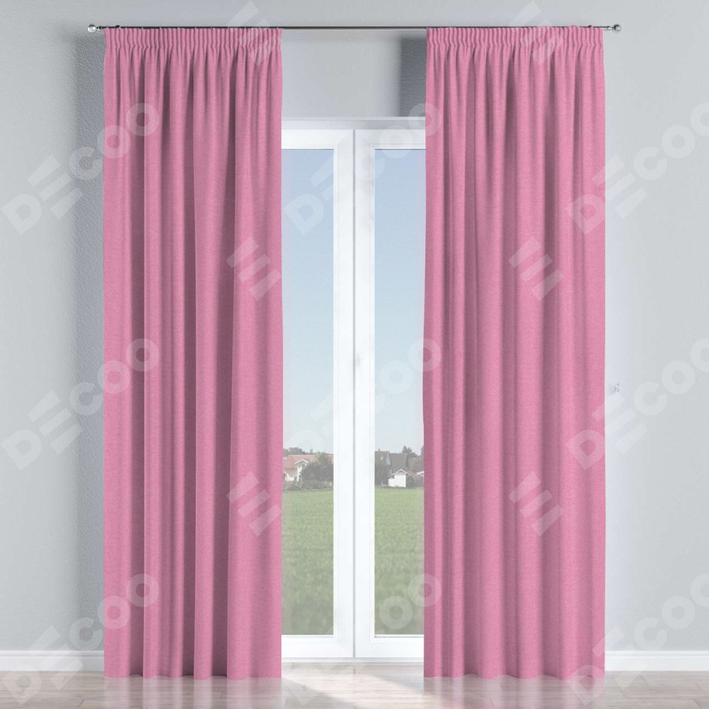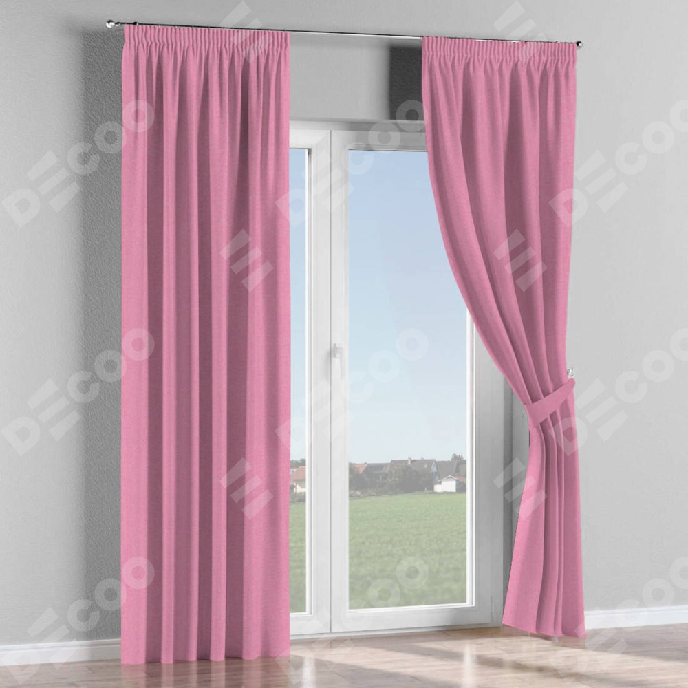 Комплект прямых штор, от производителя «Cortin», пошиты из ткани лён димаут розовый, артикул ткани 16257. С изнаночной стороны в верхней части штор пристрачивается шторная лента с декоративными складками «Карандаш». Для создания элегантных складок прямые шторы шьются по стандарту с коэффициентом 1:2 (на 100 см. ширины проёма 200 см. ширины ткани).