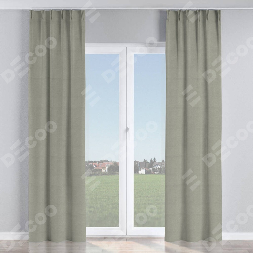 Комплект прямых штор, от производителя «Cortin», пошиты из ткани лён димаут серый, артикул ткани 00001. С изнаночной стороны в верхней части штор пристрачивается шторная лента с декоративными складками «Кустик». Для создания элегантных складок прямые шторы шьются по стандарту с коэффициентом 1:2 (на 100 см. ширины проёма 200 см. ширины ткани).
