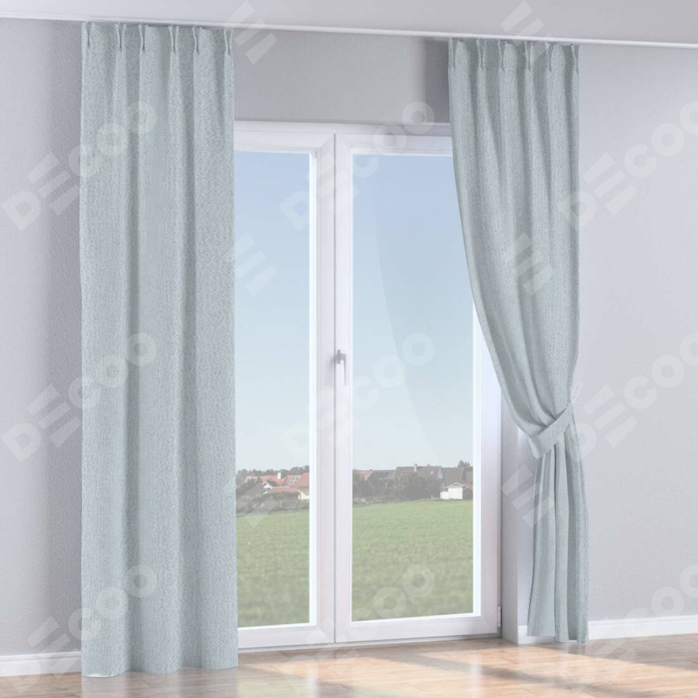 Комплект прямых штор, от производителя «Cortin», пошиты из ткани лён димаут серый, артикул ткани F3. С изнаночной стороны в верхней части штор пристрачивается шторная лента с декоративными складками «Кустик». Для создания элегантных складок прямые шторы шьются по стандарту с коэффициентом 1:2 (на 100 см. ширины проёма 200 см. ширины ткани).