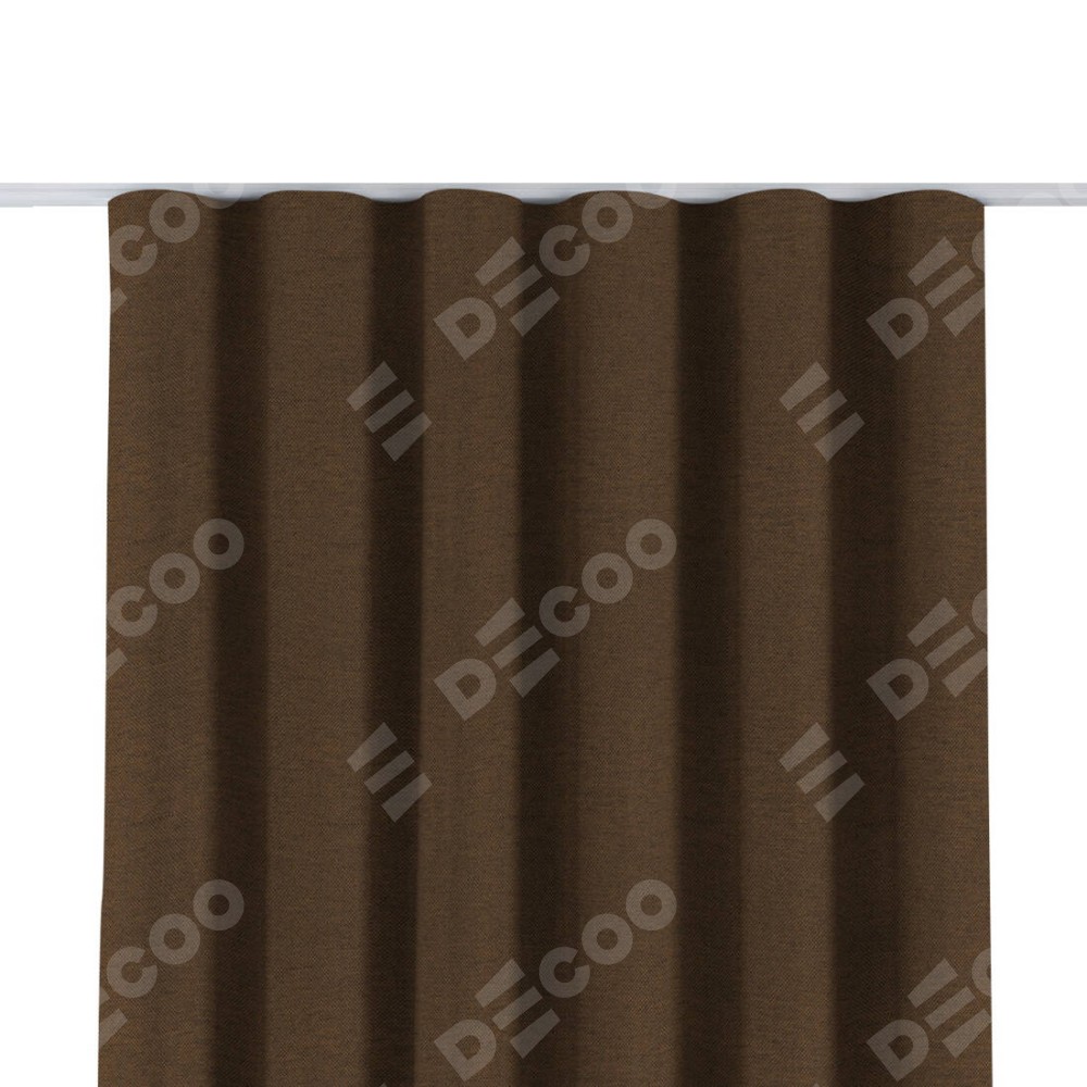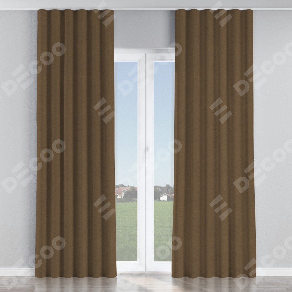 Комплект прямых штор, от производителя «Cortin», пошиты из ткани лён димаут тёмно-коричневый, артикул ткани 83030. С изнаночной стороны в верхней части штор пристрачивается шторная лента с декоративными складками «Волна». Для создания элегантных складок прямые шторы шьются по стандарту с коэффициентом 1:2 (на 100 см. ширины проёма 200 см. ширины ткани).