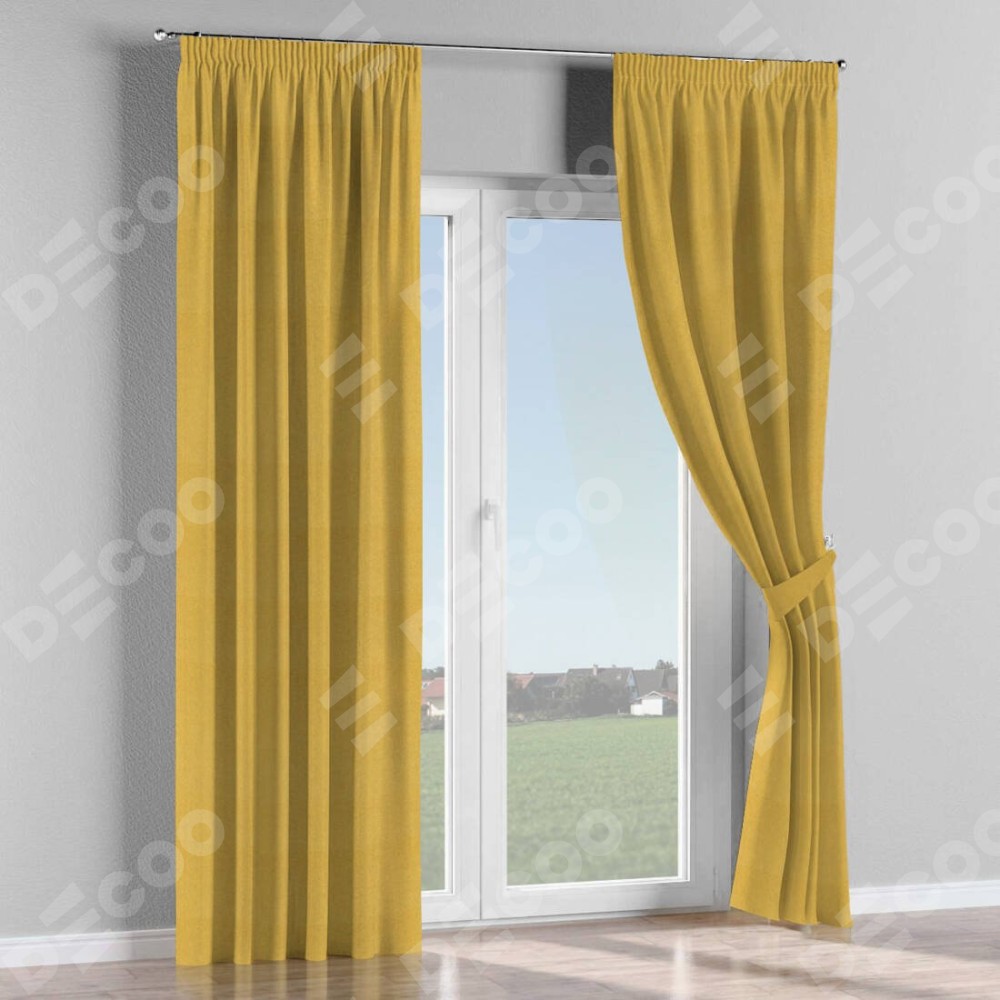 Комплект прямых штор, от производителя «Cortin», пошиты из ткани твид блэкаут пыльная горчица, артикул ткани 21588. С изнаночной стороны в верхней части штор пристрачивается шторная лента с декоративными складками «Карандаш». Для создания элегантных складок прямые шторы шьются по стандарту с коэффициентом 1:2 (на 100 см. ширины проёма 200 см. ширины ткани).