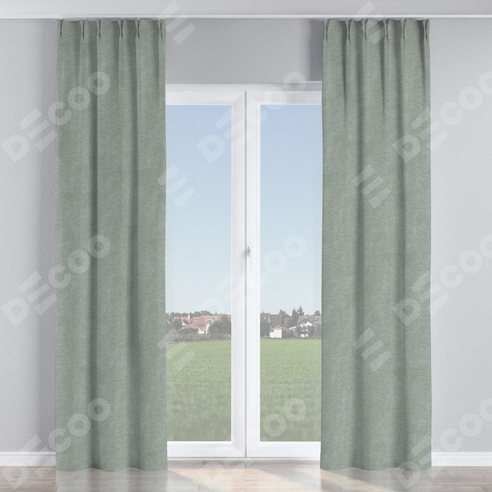Комплект прямых штор, от производителя «Cortin», пошиты из ткани твид блэкаут светло-серый, артикул ткани 21576. С изнаночной стороны в верхней части штор пристрачивается шторная лента с декоративными складками «Кустик». Для создания элегантных складок прямые шторы шьются по стандарту с коэффициентом 1:2 (на 100 см. ширины проёма 200 см. ширины ткани).