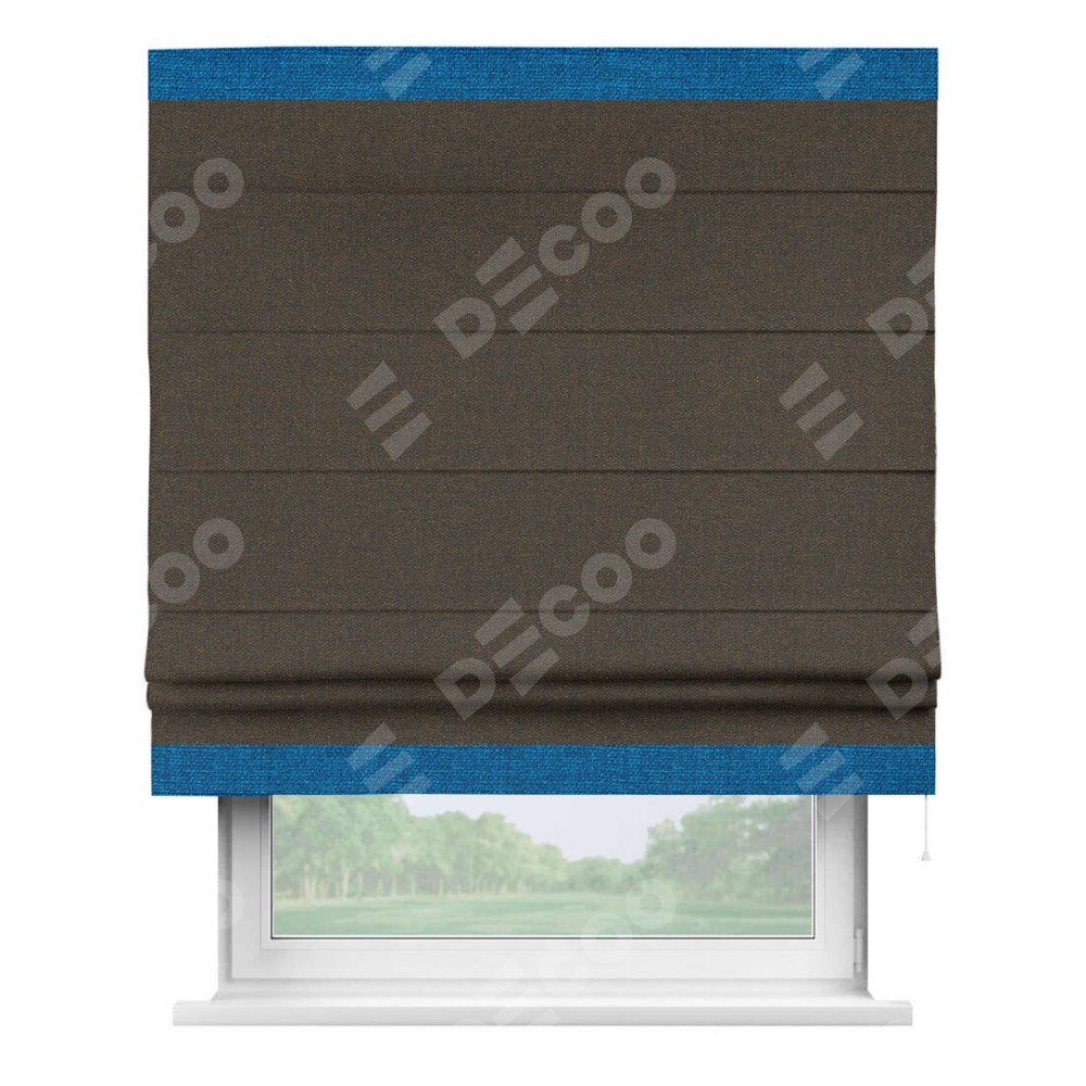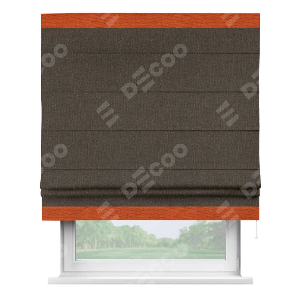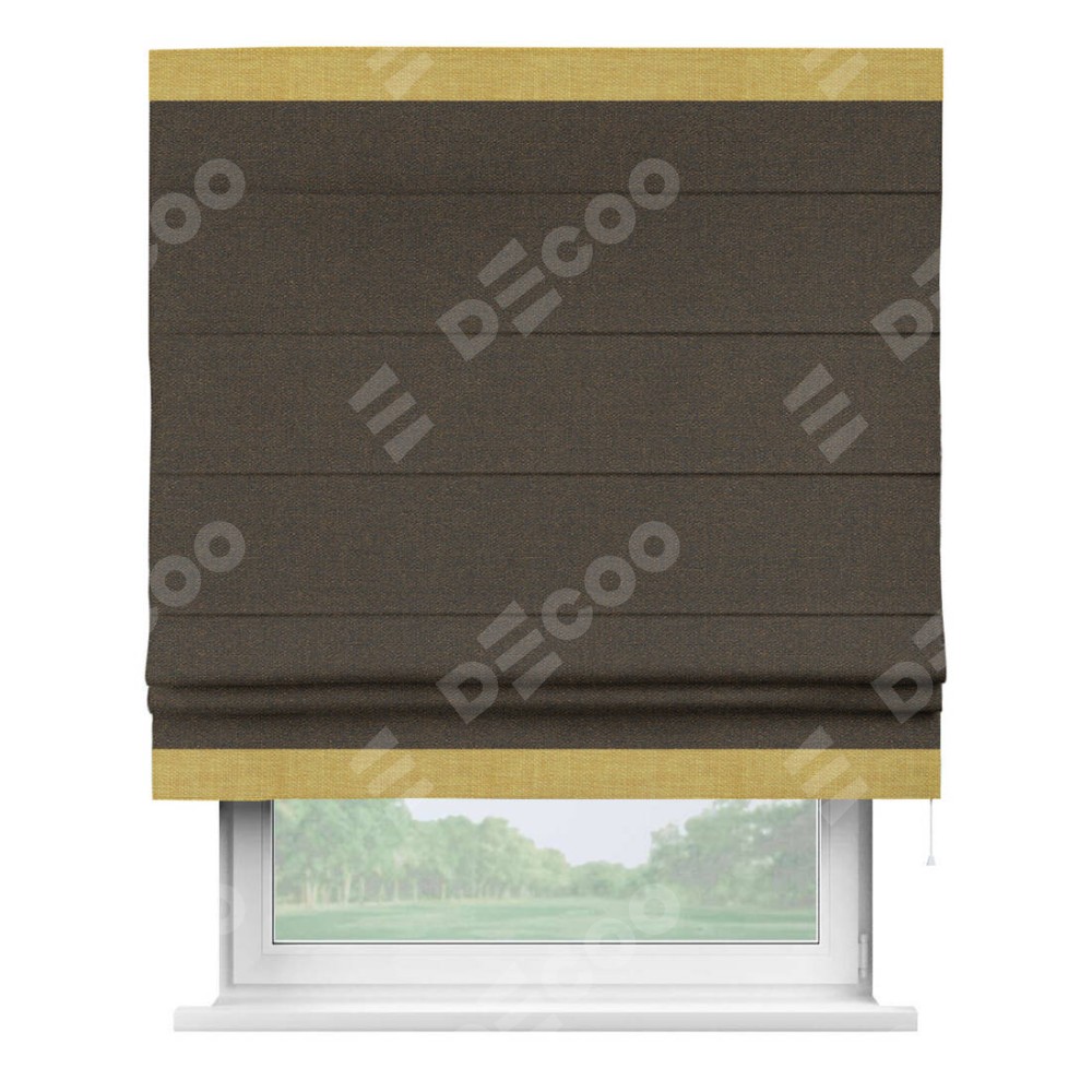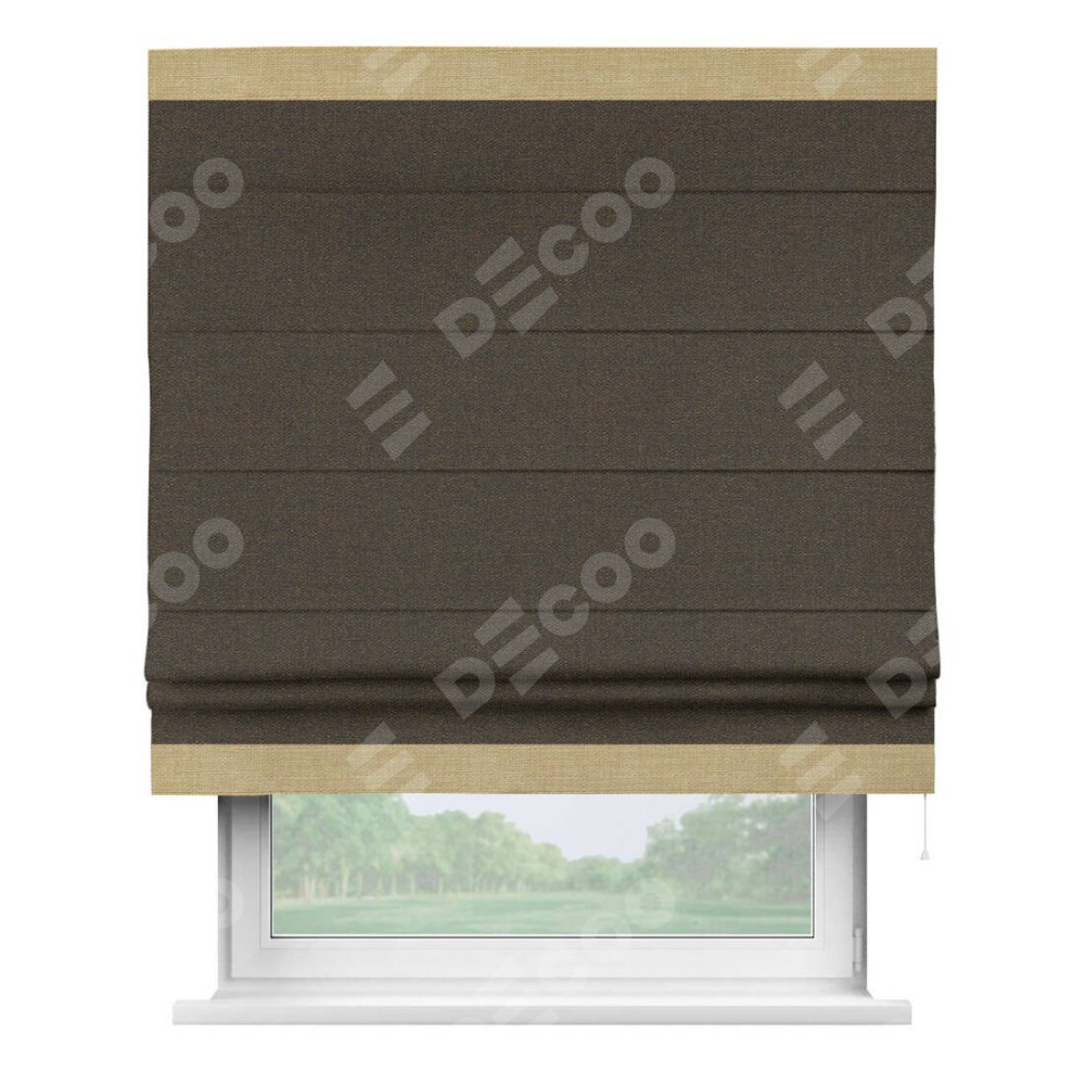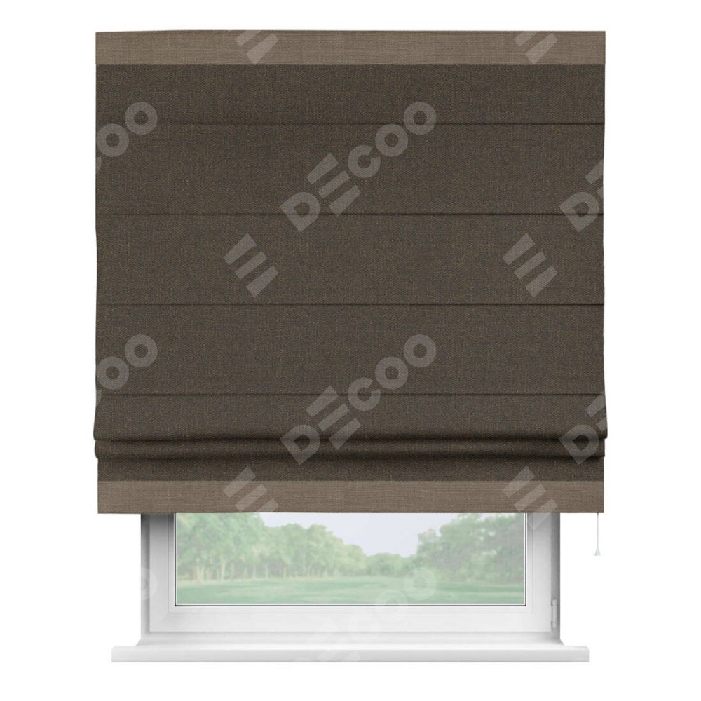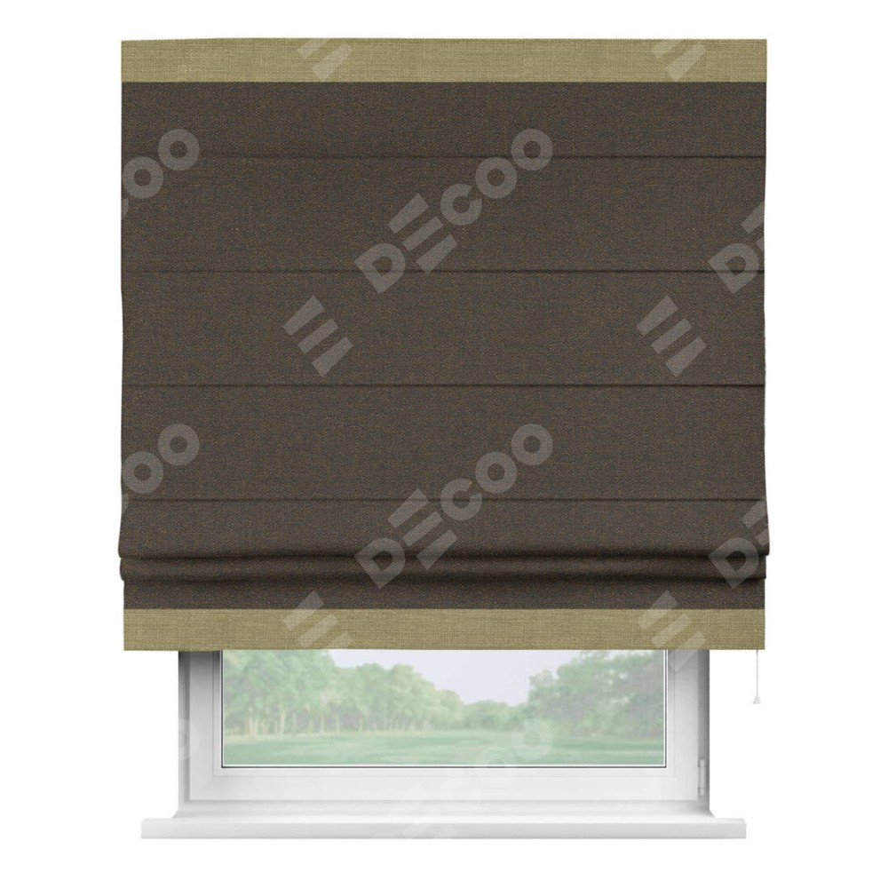 Римская штора «Кортин» с кантом Горизонт, для проема, ткань лён темно-коричневый
