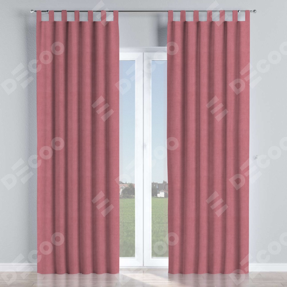 Комплект прямых штор, от производителя «Cortin», пошиты из ткани вельвет брусника, артикул ткани 85550. Данная модель пошита на петлях, комплектуется на выбор круглым карнизом и подходит для монтажа на стену или потолок. Прямые шторы на петлях шьются по стандарту с коэффициентом 1/2 (на 100 см. ширины проёма 200 см. ширины ткани), отличительным преимуществом данной модели является простой способ монтажа. Достаточно повесить ее на трубу и штора готова!