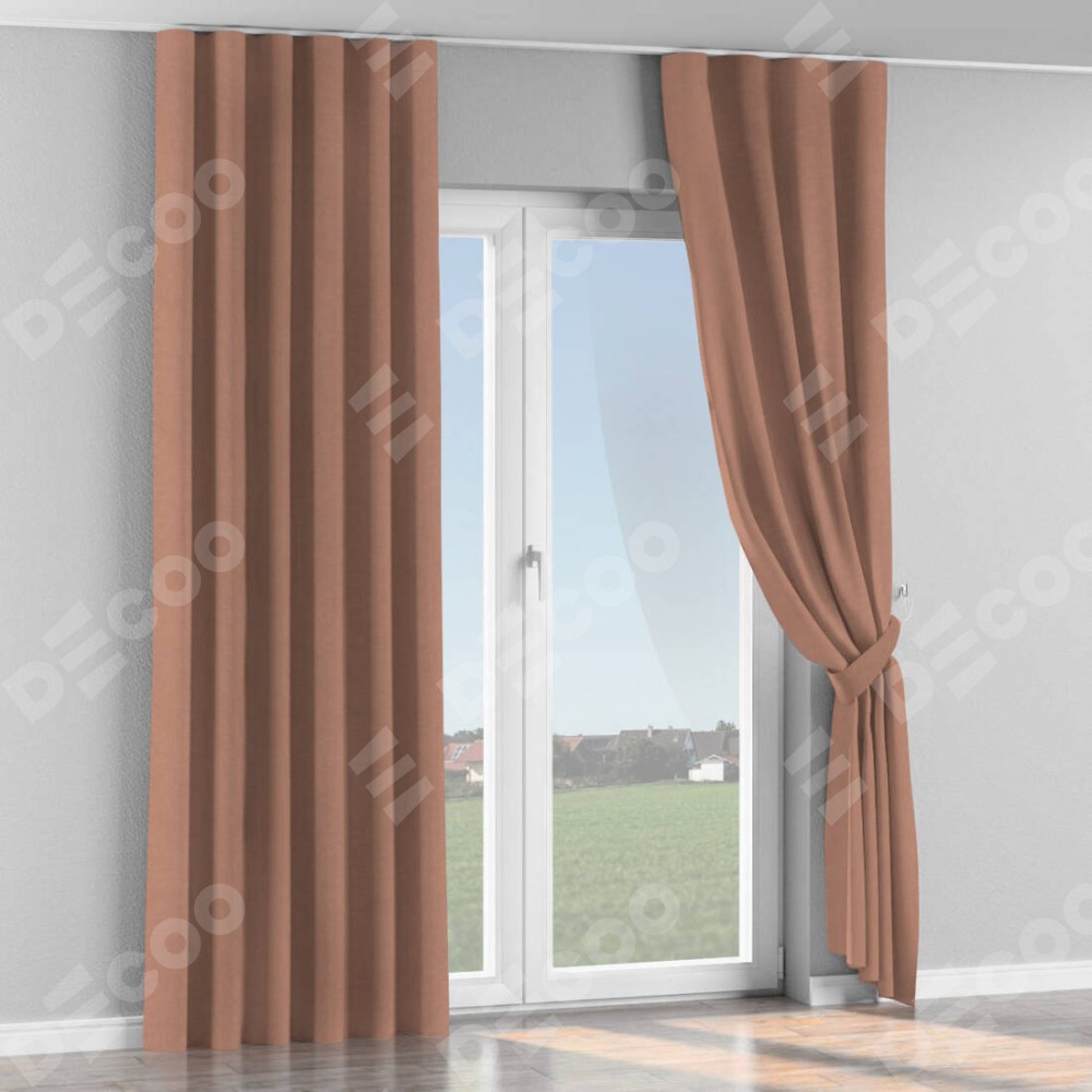 Комплект прямых штор, от производителя «Cortin», пошиты из ткани вельвет брусничный джем, артикул ткани 17750. С изнаночной стороны в верхней части штор пристрачивается шторная лента с декоративными складками «Волна». Для создания элегантных складок прямые шторы шьются по стандарту с коэффициентом 1:2 (на 100 см. ширины проёма 200 см. ширины ткани).