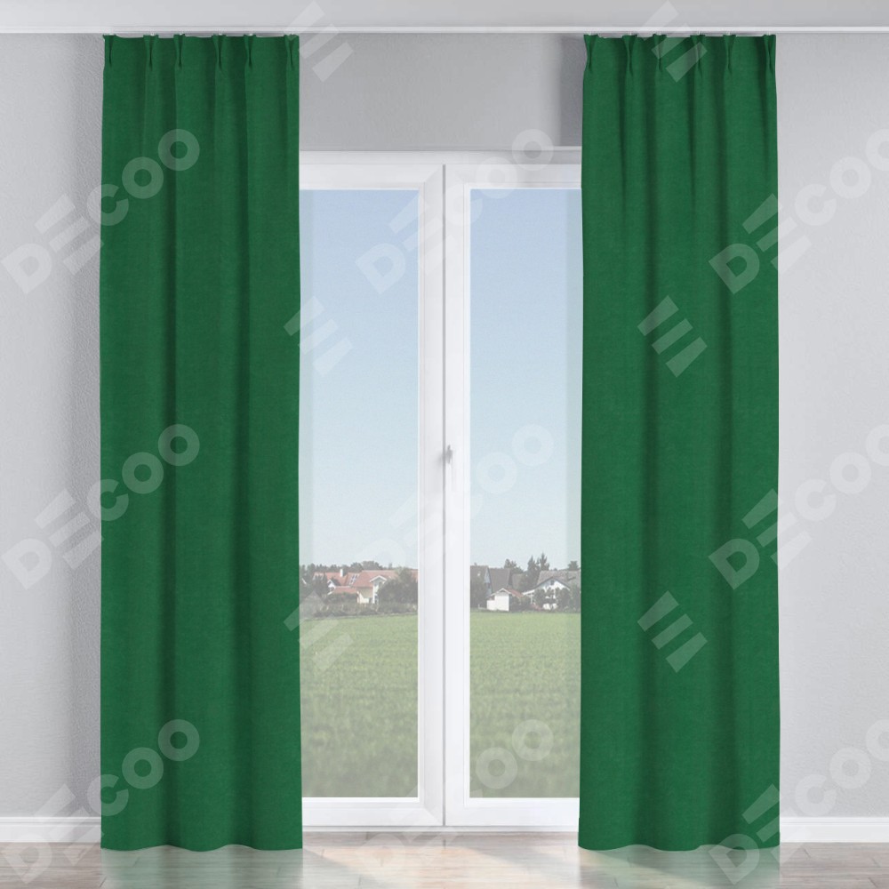 Комплект прямых штор, от производителя «Cortin», пошиты из ткани вельвет зелёный, артикул ткани 85546. С изнаночной стороны в верхней части штор пристрачивается шторная лента с декоративными складками «Кустик». Для создания элегантных складок прямые шторы шьются по стандарту с коэффициентом 1:2 (на 100 см. ширины проёма 200 см. ширины ткани).
