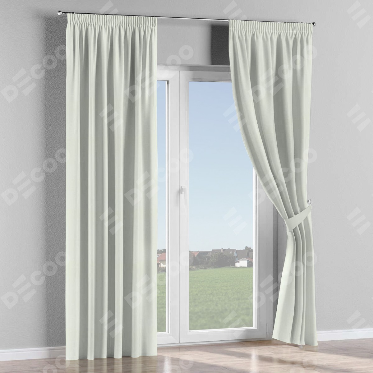 Комплект прямых штор, от производителя «Cortin», пошиты из ткани вельвет кремовый, артикул ткани 85524. С изнаночной стороны в верхней части штор пристрачивается шторная лента с декоративными складками «Карандаш». Для создания элегантных складок прямые шторы шьются по стандарту с коэффициентом 1:2 (на 100 см. ширины проёма 200 см. ширины ткани).