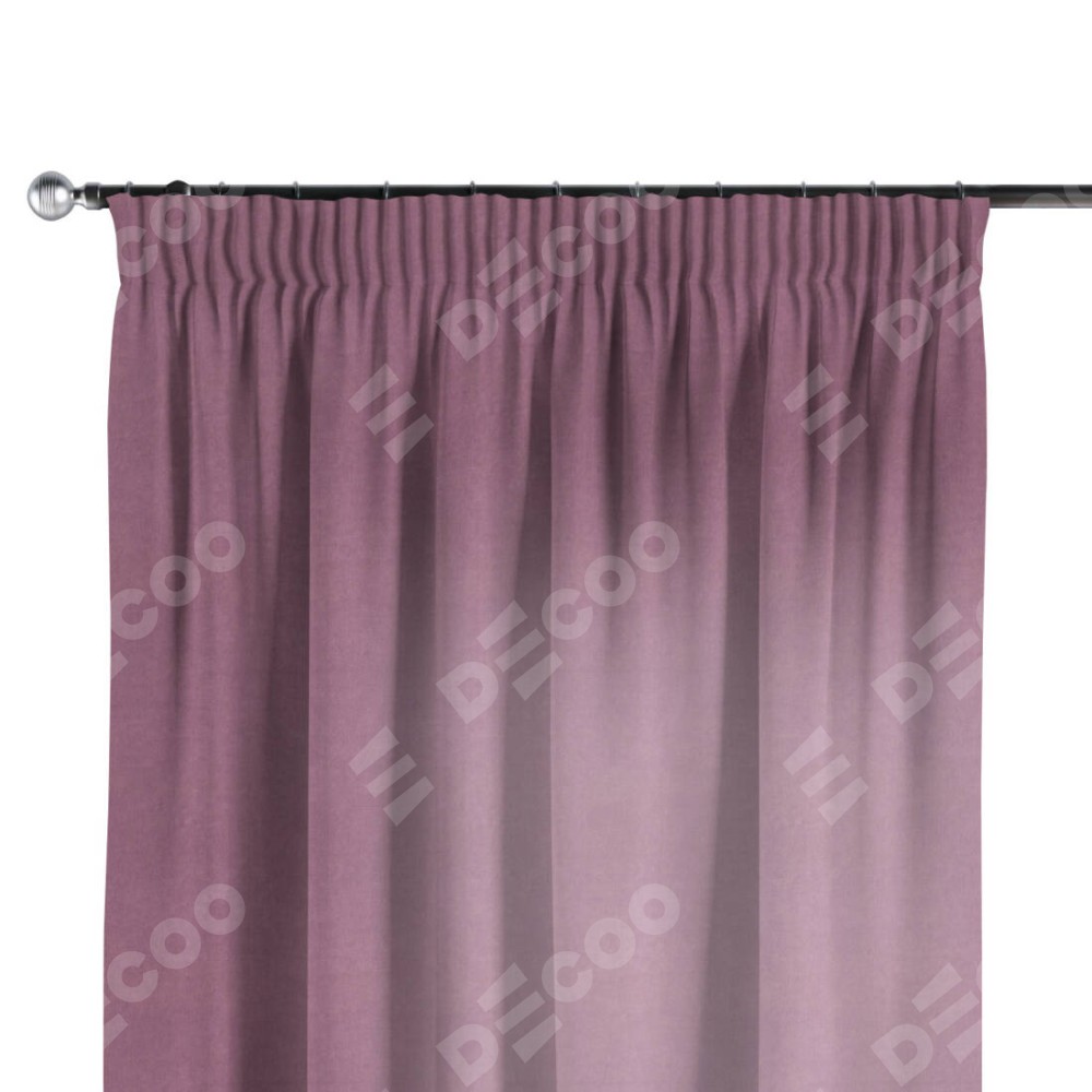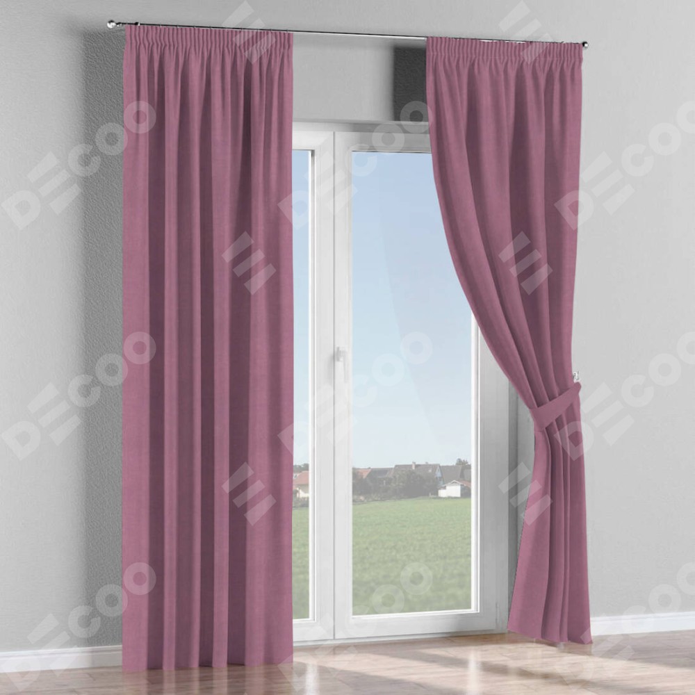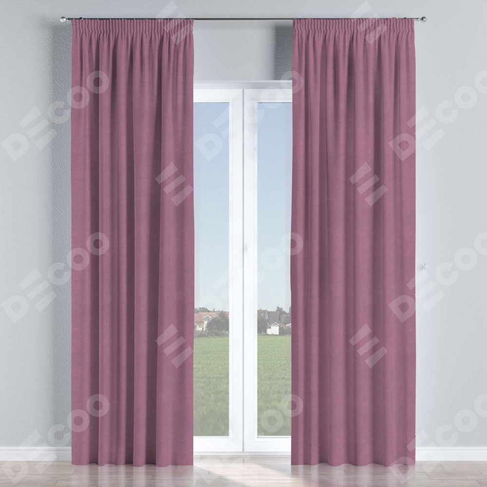 Комплект прямых штор, от производителя «Cortin», пошиты из ткани вельвет лиловый, артикул ткани 17752. С изнаночной стороны в верхней части штор пристрачивается шторная лента с декоративными складками «Карандаш». Для создания элегантных складок прямые шторы шьются по стандарту с коэффициентом 1:2 (на 100 см. ширины проёма 200 см. ширины ткани).