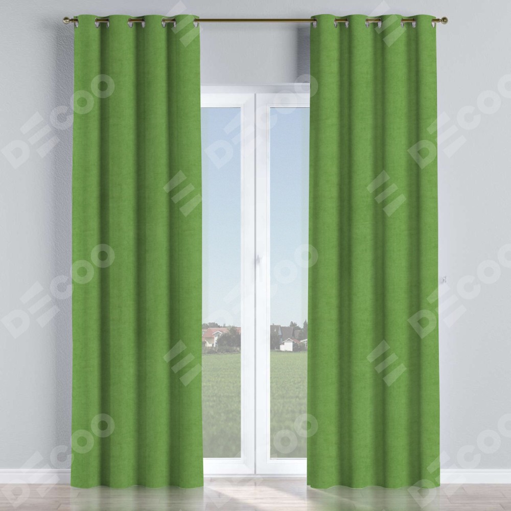 Комплект прямых штор, от производителя «Cortin», пошиты из ткани вельвет салатовый, артикул ткани 87072. Данная модель пошита на люверсах, комплектуется на выбор круглым карнизом и подходит для монтажа на стену или потолок. Прямые шторы на люверсах шьются по стандарту с коэффициентом 1/2 (на 100 см. ширины проёма 200 см. ширины ткани), отличительным преимуществом данной модели является простой способ монтажа. Достаточно повесить ее на трубу и штора готова!