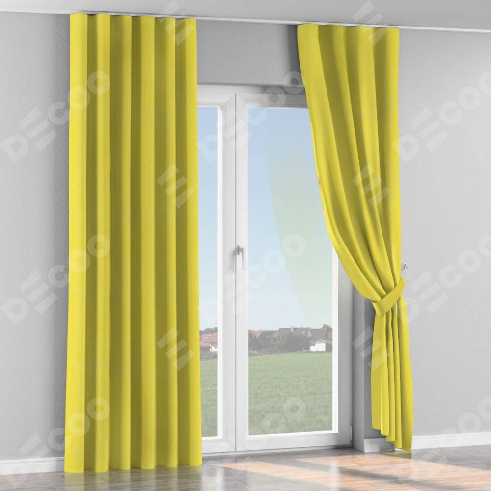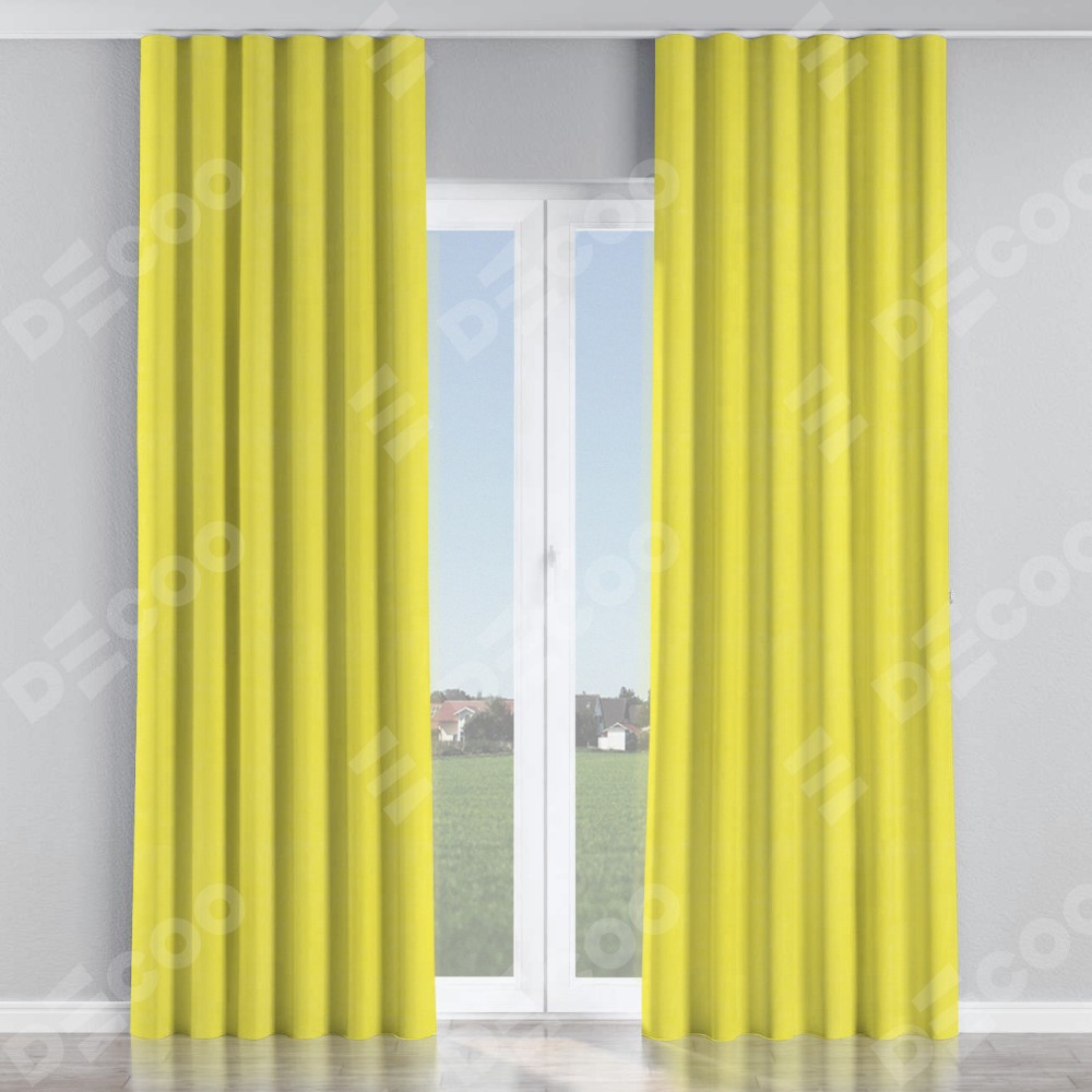 Комплект прямых штор, от производителя «Cortin», пошиты из ткани вельвет светло-желтый, артикул ткани 30997. С изнаночной стороны в верхней части штор пристрачивается шторная лента с декоративными складками «Волна». Для создания элегантных складок прямые шторы шьются по стандарту с коэффициентом 1:2 (на 100 см. ширины проёма 200 см. ширины ткани).