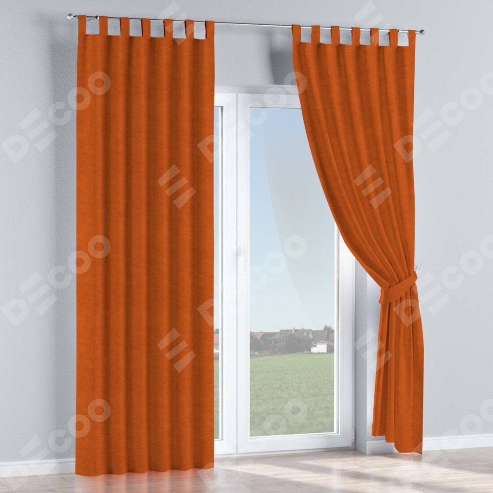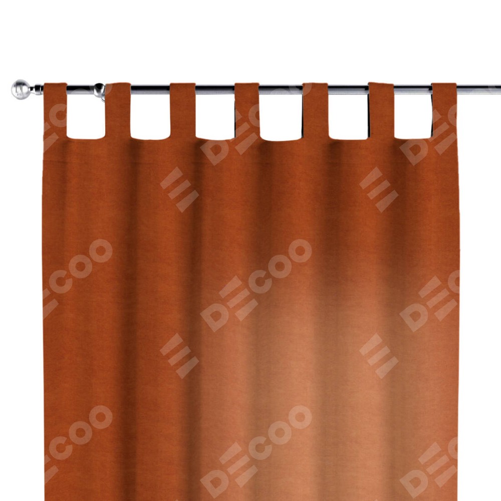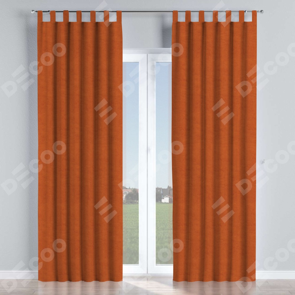 Комплект прямых штор, от производителя «Cortin», пошиты из ткани вельвет терракотовый, артикул ткани 85548. Данная модель пошита на петлях, комплектуется на выбор круглым карнизом и подходит для монтажа на стену или потолок. Прямые шторы на петлях шьются по стандарту с коэффициентом 1/2 (на 100 см. ширины проёма 200 см. ширины ткани), отличительным преимуществом данной модели является простой способ монтажа. Достаточно повесить ее на трубу и штора готова!