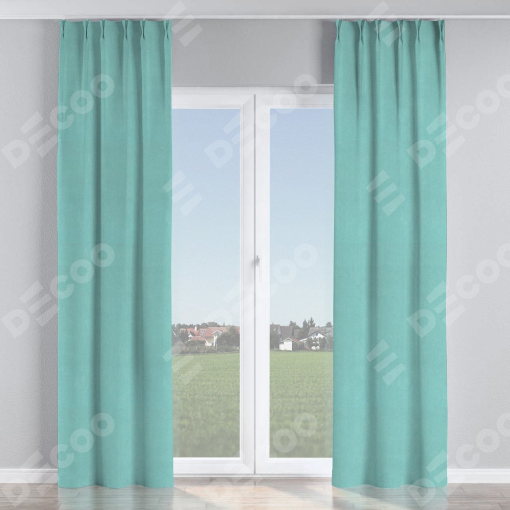 Комплект прямых штор, от производителя «Cortin», пошиты из ткани вельвет тиффани, артикул ткани 17765. С изнаночной стороны в верхней части штор пристрачивается шторная лента с декоративными складками «Кустик». Для создания элегантных складок прямые шторы шьются по стандарту с коэффициентом 1:2 (на 100 см. ширины проёма 200 см. ширины ткани).