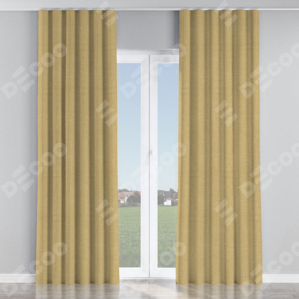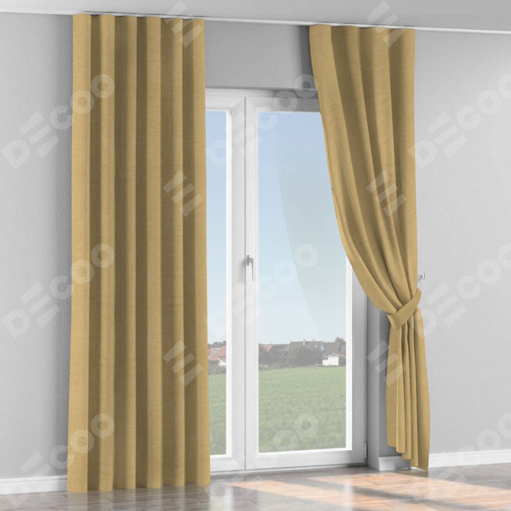 Комплект прямых штор, от производителя «Cortin», пошиты из ткани лён бежевый, артикул ткани 7442. С изнаночной стороны в верхней части штор пристрачивается шторная лента с декоративными складками «Волна». Для создания элегантных складок прямые шторы шьются по стандарту с коэффициентом 1:2 (на 100 см. ширины проёма 200 см. ширины ткани).