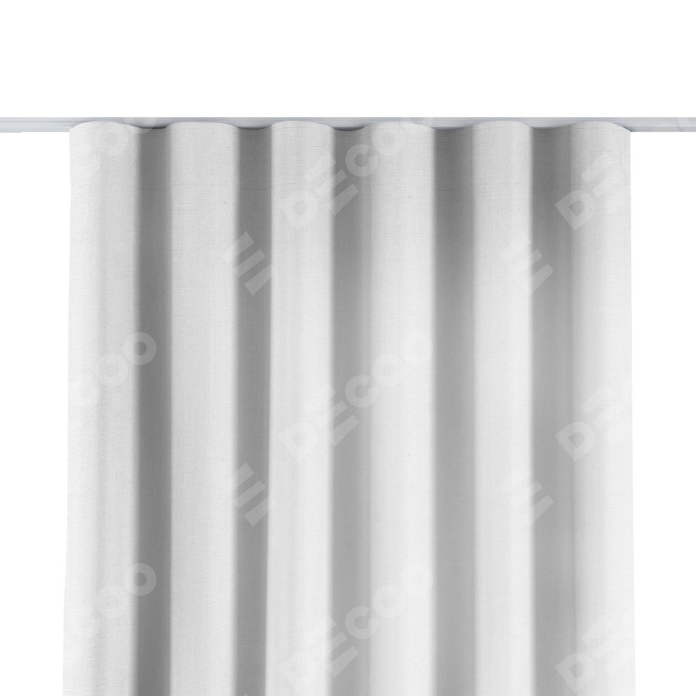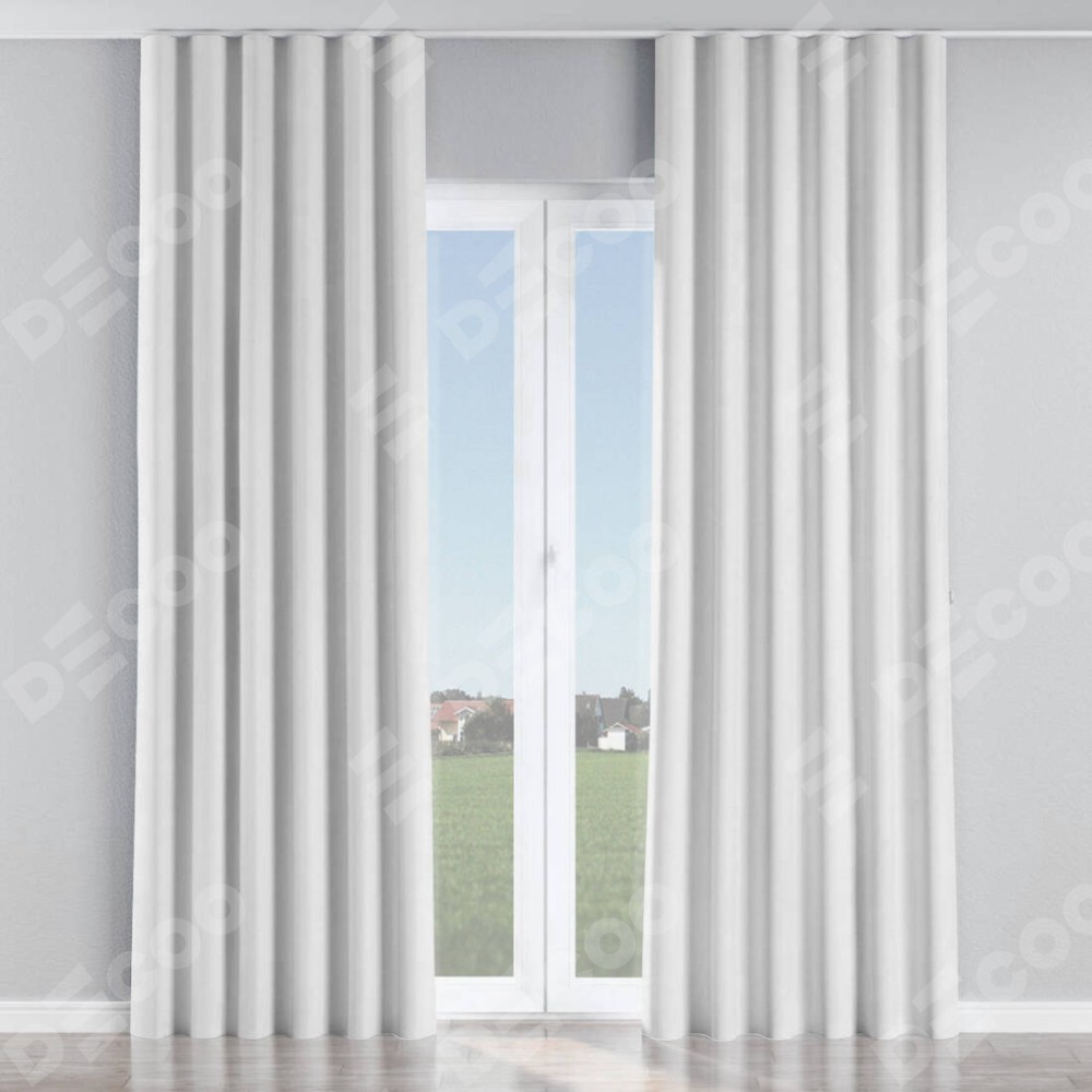 Комплект прямых штор, от производителя «Cortin», пошиты из ткани лён белый, артикул ткани 53430. С изнаночной стороны в верхней части штор пристрачивается шторная лента с декоративными складками «Волна». Для создания элегантных складок прямые шторы шьются по стандарту с коэффициентом 1:2 (на 100 см. ширины проёма 200 см. ширины ткани).