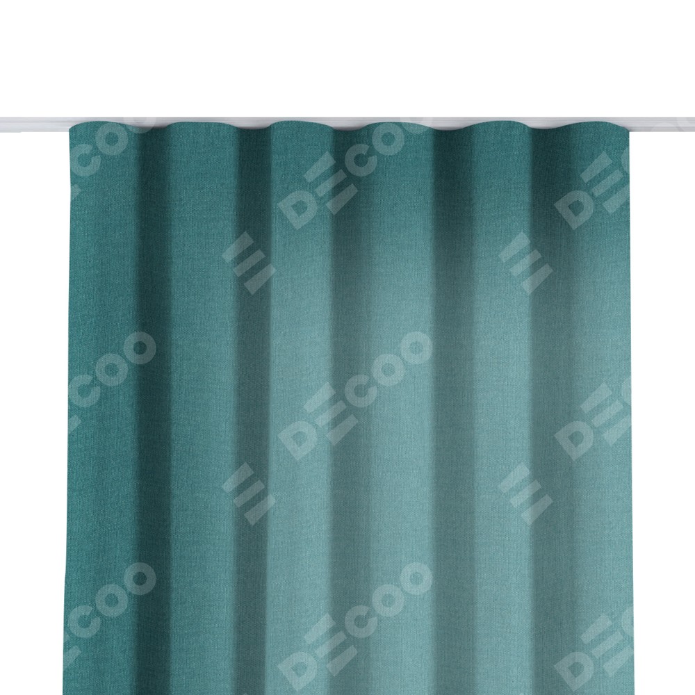 Комплект прямых штор, от производителя «Cortin», пошиты из ткани лён бирюзовый, артикул ткани 53436. С изнаночной стороны в верхней части штор пристрачивается шторная лента с декоративными складками «Волна». Для создания элегантных складок прямые шторы шьются по стандарту с коэффициентом 1:2 (на 100 см. ширины проёма 200 см. ширины ткани).