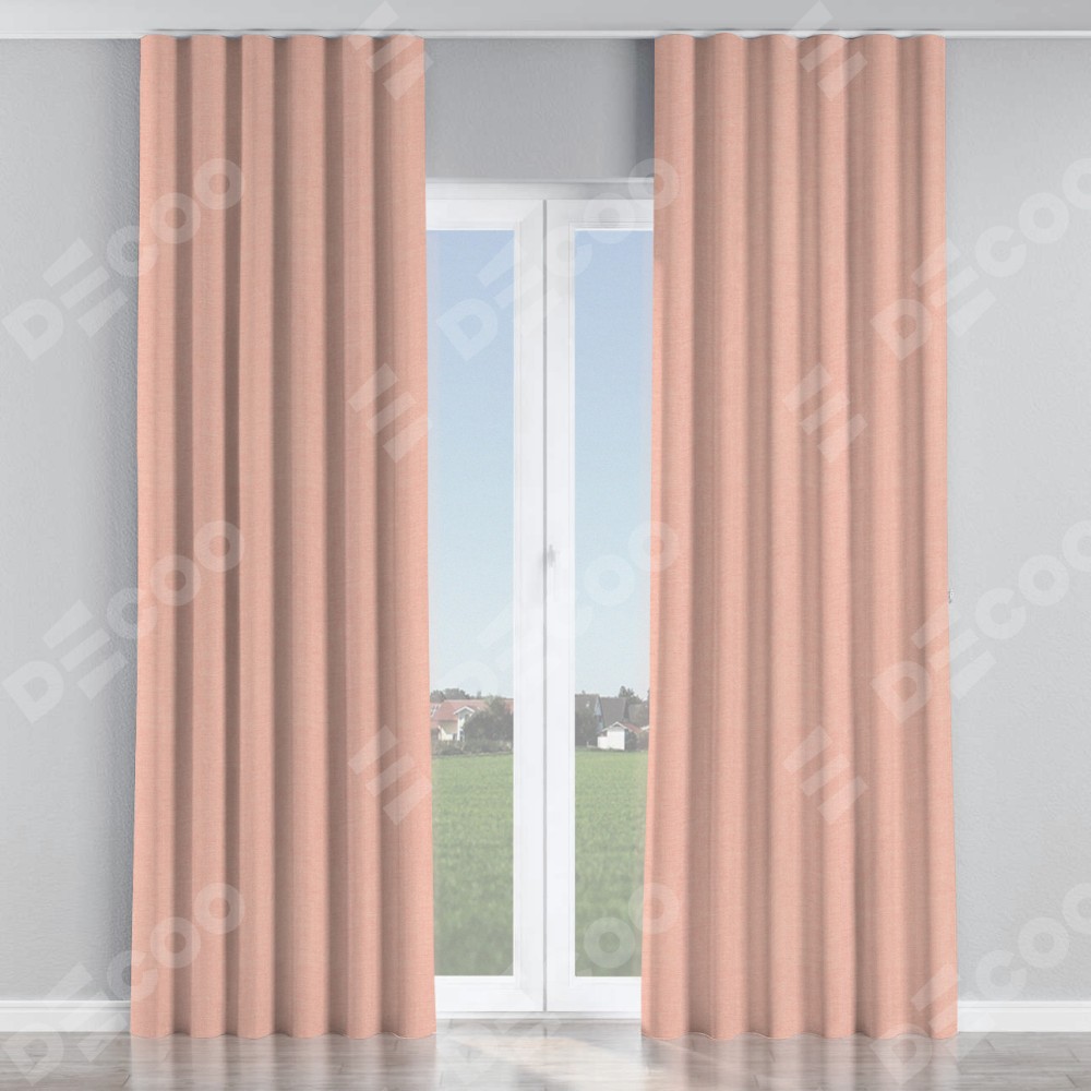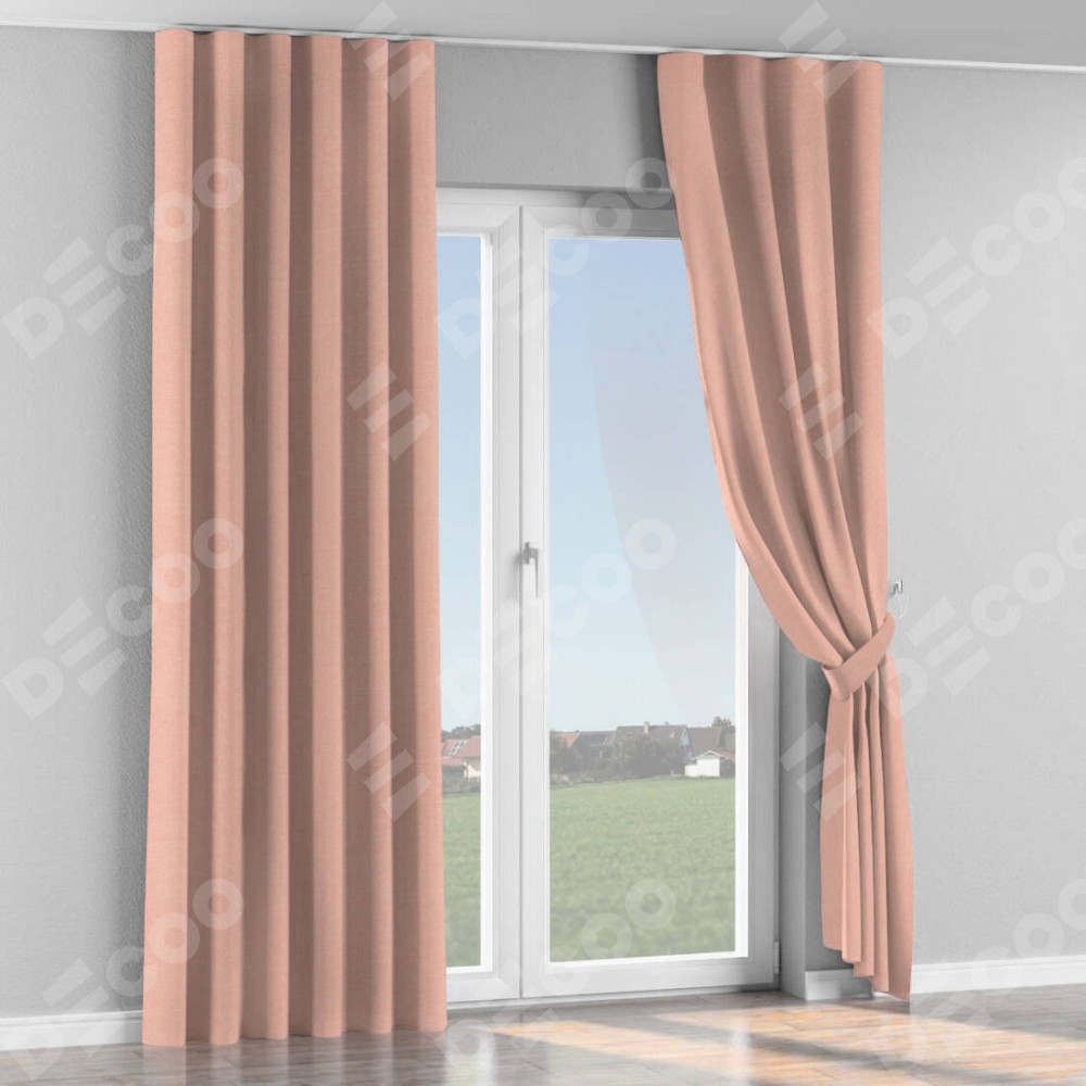 Комплект прямых штор, от производителя «Cortin», пошиты из ткани лён розовый, артикул ткани 00005. С изнаночной стороны в верхней части штор пристрачивается шторная лента с декоративными складками «Волна». Для создания элегантных складок прямые шторы шьются по стандарту с коэффициентом 1:2 (на 100 см. ширины проёма 200 см. ширины ткани).