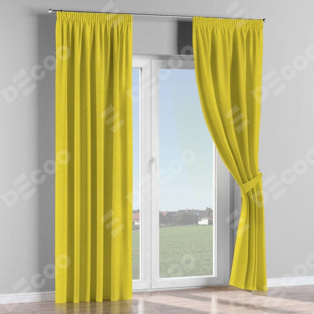 Комплект прямых штор, от производителя «Cortin», пошиты из ткани лён салатовый, артикул ткани 53437. С изнаночной стороны в верхней части штор пристрачивается шторная лента с декоративными складками «Карандаш». Для создания элегантных складок прямые шторы шьются по стандарту с коэффициентом 1:2 (на 100 см. ширины проёма 200 см. ширины ткани).