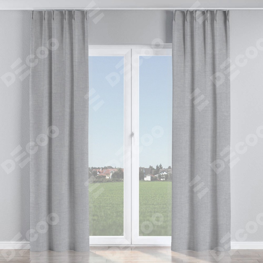 Комплект прямых штор, от производителя «Cortin», пошиты из ткани лён серый, артикул ткани 7440. С изнаночной стороны в верхней части штор пристрачивается шторная лента с декоративными складками «Кустик». Для создания элегантных складок прямые шторы шьются по стандарту с коэффициентом 1:2 (на 100 см. ширины проёма 200 см. ширины ткани).