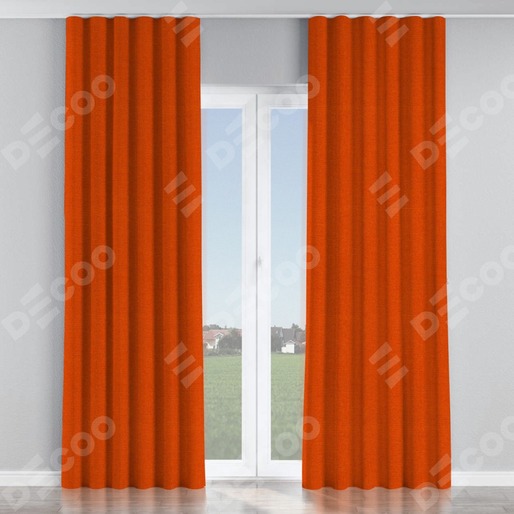 Комплект прямых штор, от производителя «Cortin», пошиты из ткани лён терракотовый, артикул ткани 53440. С изнаночной стороны в верхней части штор пристрачивается шторная лента с декоративными складками «Волна». Для создания элегантных складок прямые шторы шьются по стандарту с коэффициентом 1:2 (на 100 см. ширины проёма 200 см. ширины ткани).